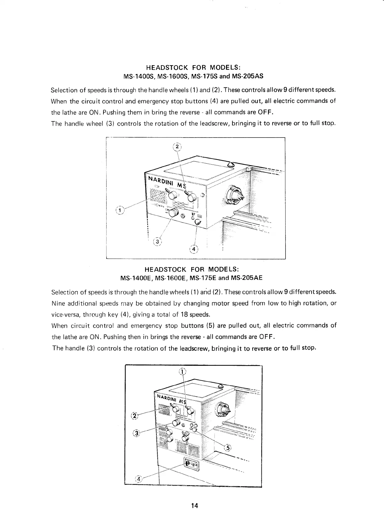 NARDINI MASCOTE MS-175E - Nardini Lathe Key Assemblies Operation; Headstock Operation