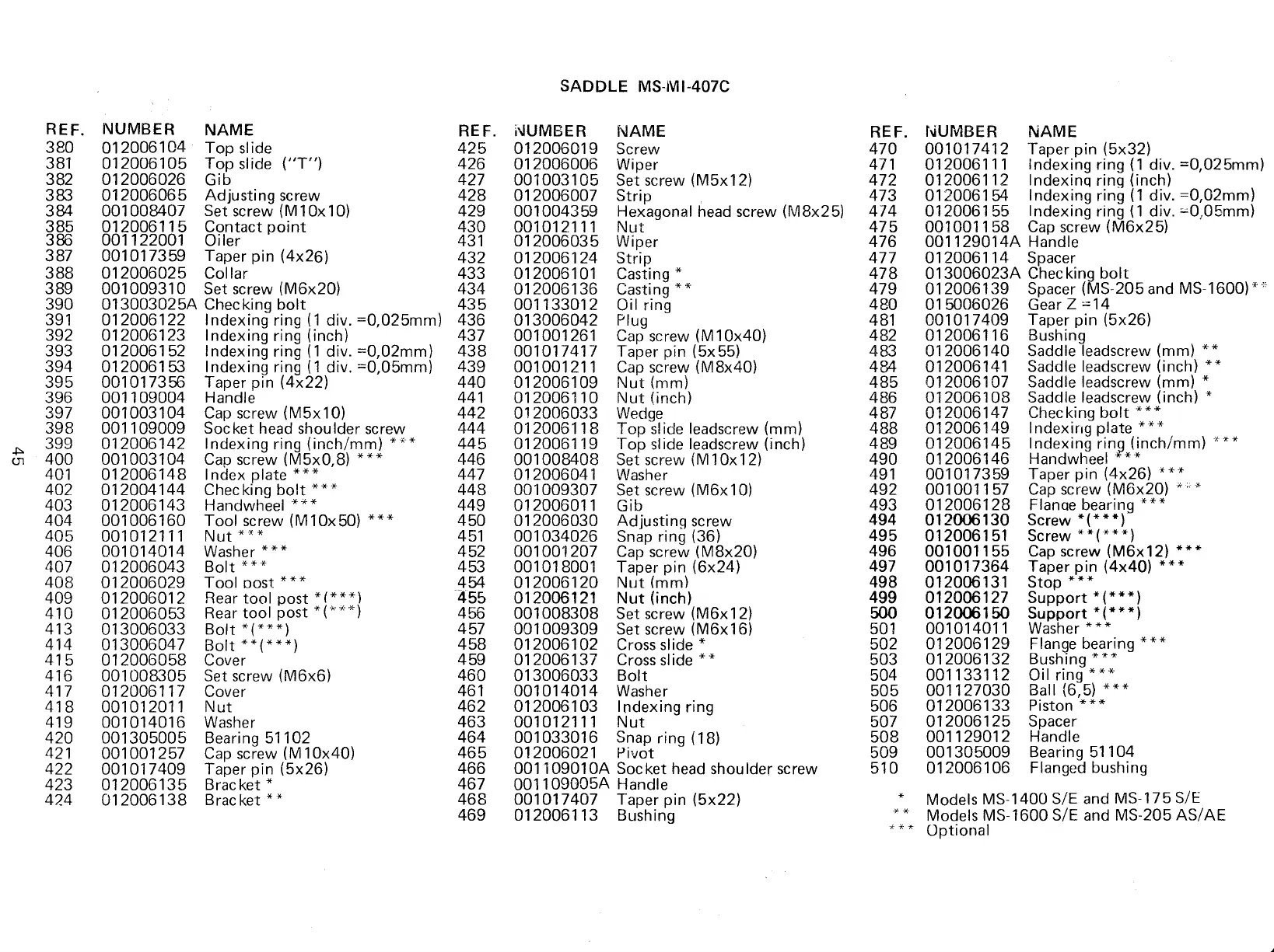 MS 1600 S/E and MS-205 AS/AE