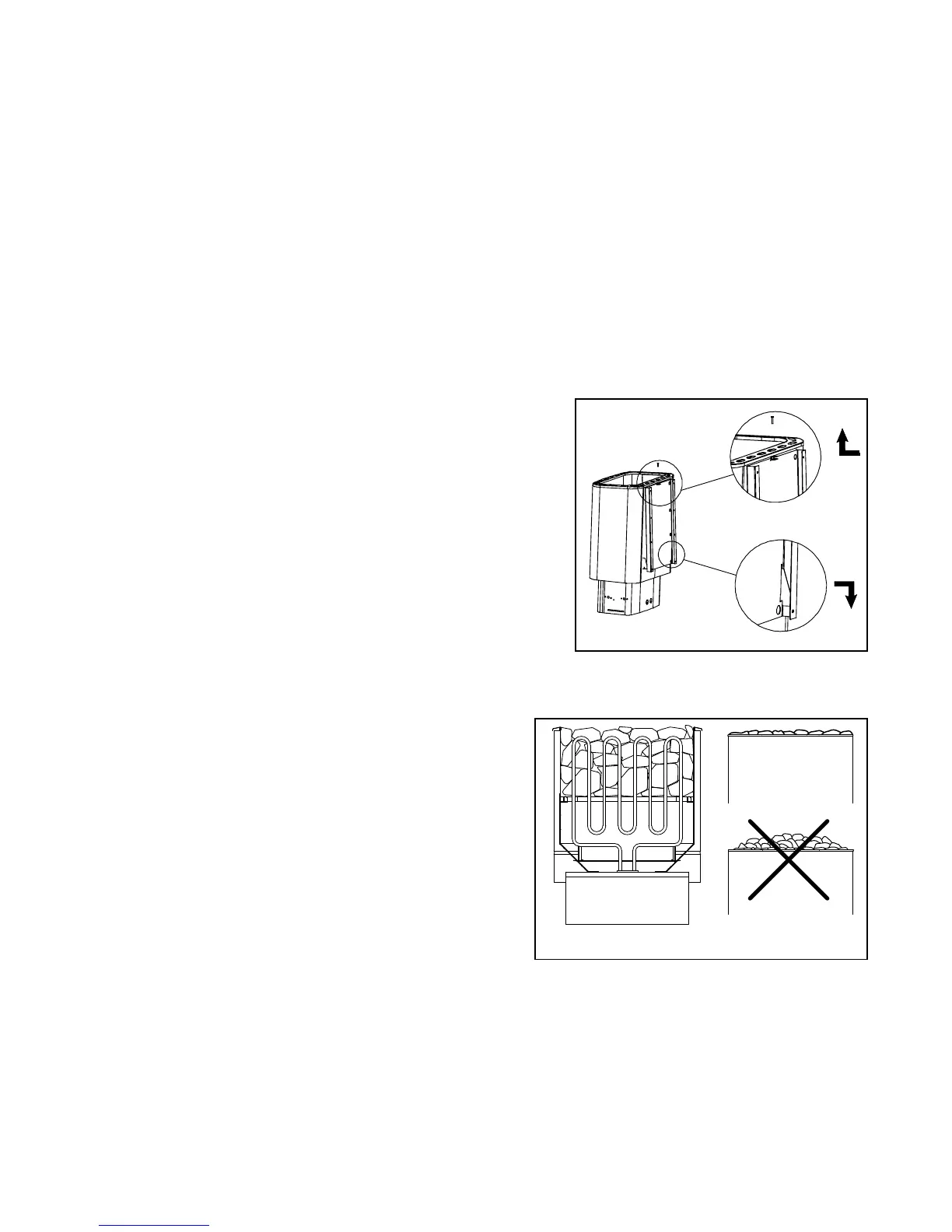 - Przy układaniu kamieni należy uważać, żeby grzałki