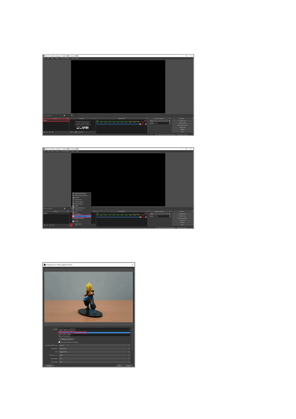 Then click [Plus button in the red frame] > [Video capture device] > [Set source name] > [OK].