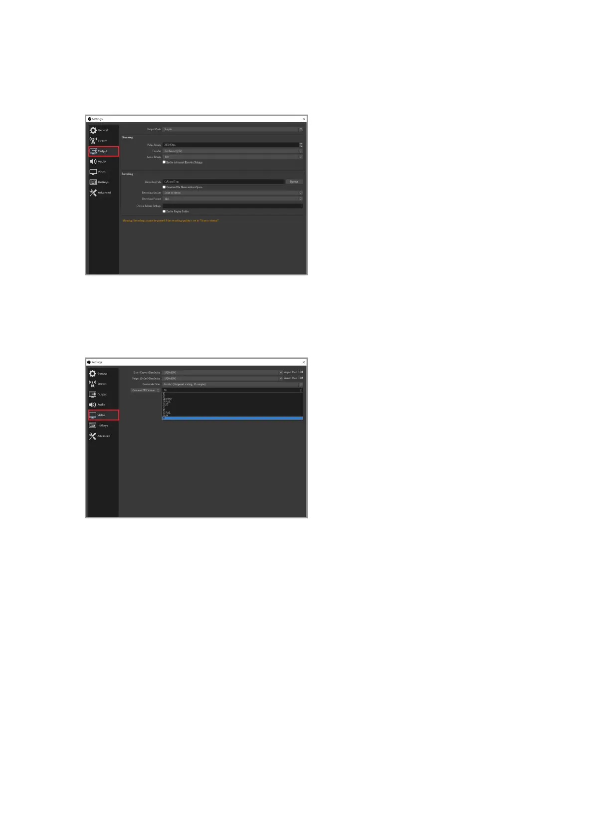 Click "Output" in the menu on the left, here it is recommended to set the bit rate to
