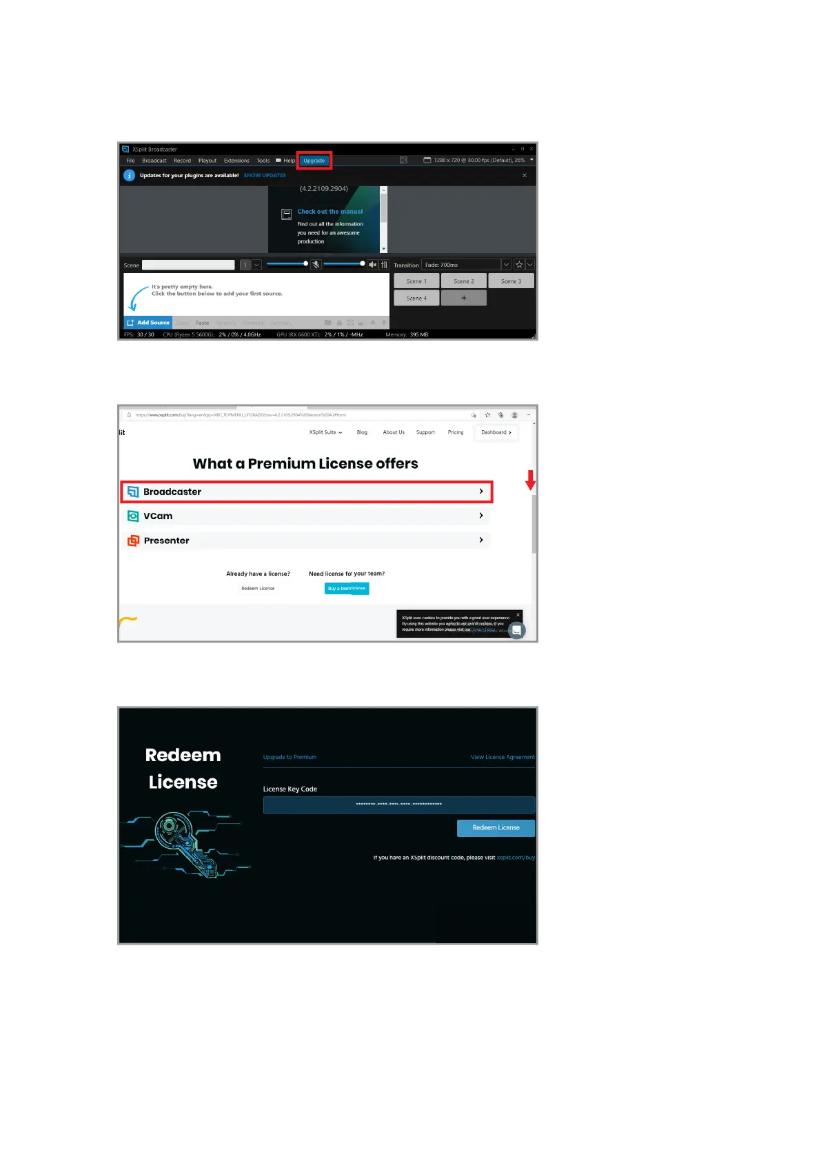 After entering the serial number, restart XSplit Broadcast