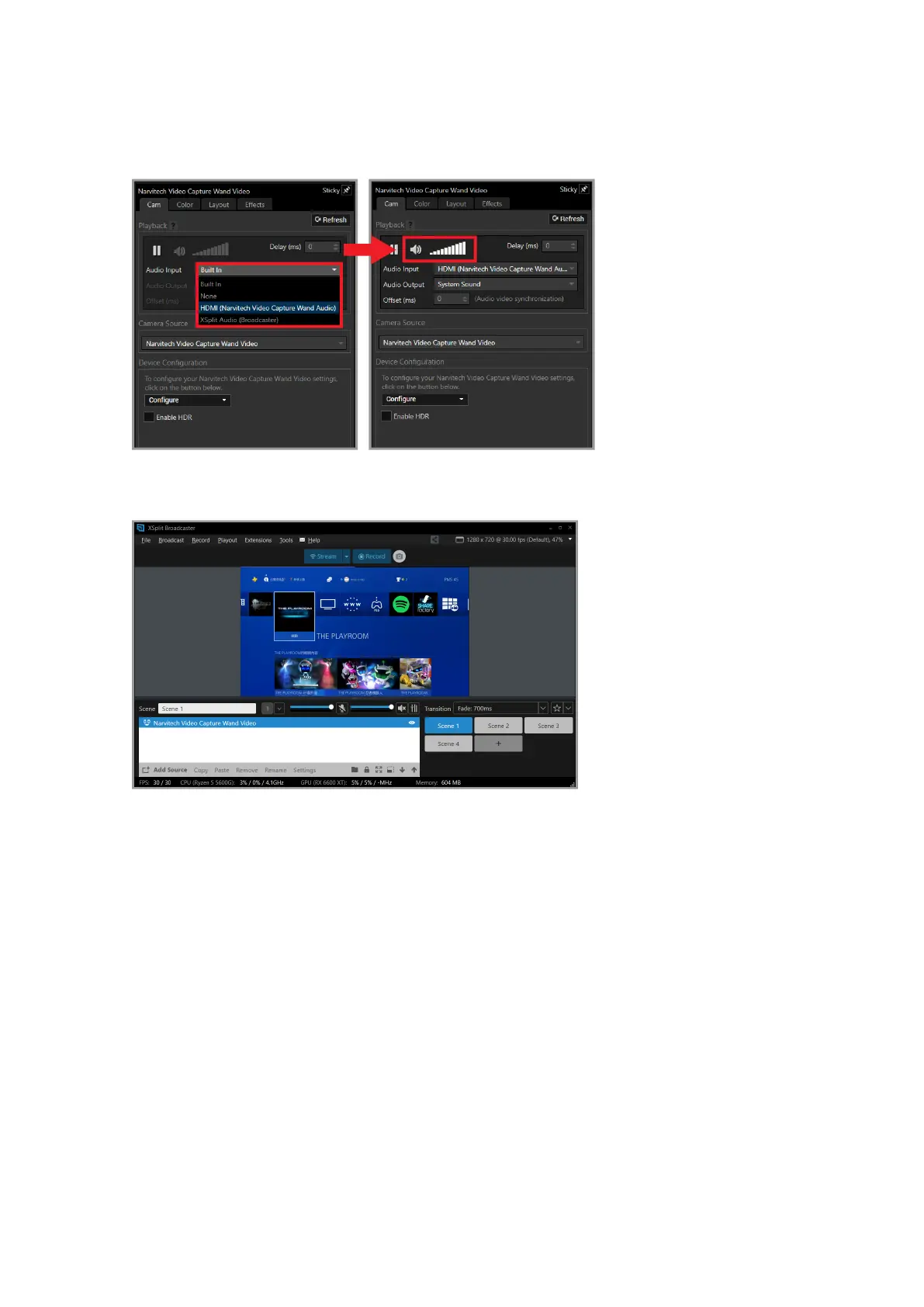 Next is the audio input. After selecting HDMI (Narvitech Video Capture Wand Audio), you can