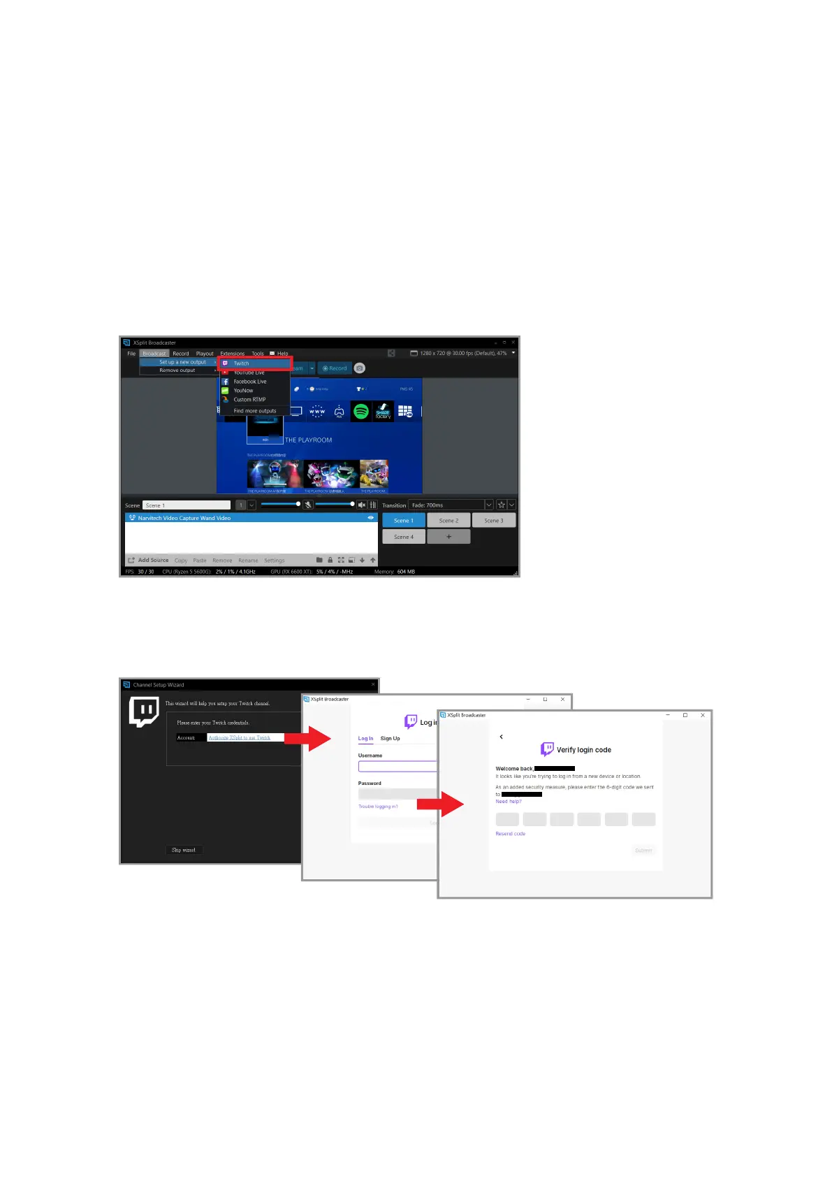 Click "Authorize XSplit to use Twitch" and open the login window. After entering the