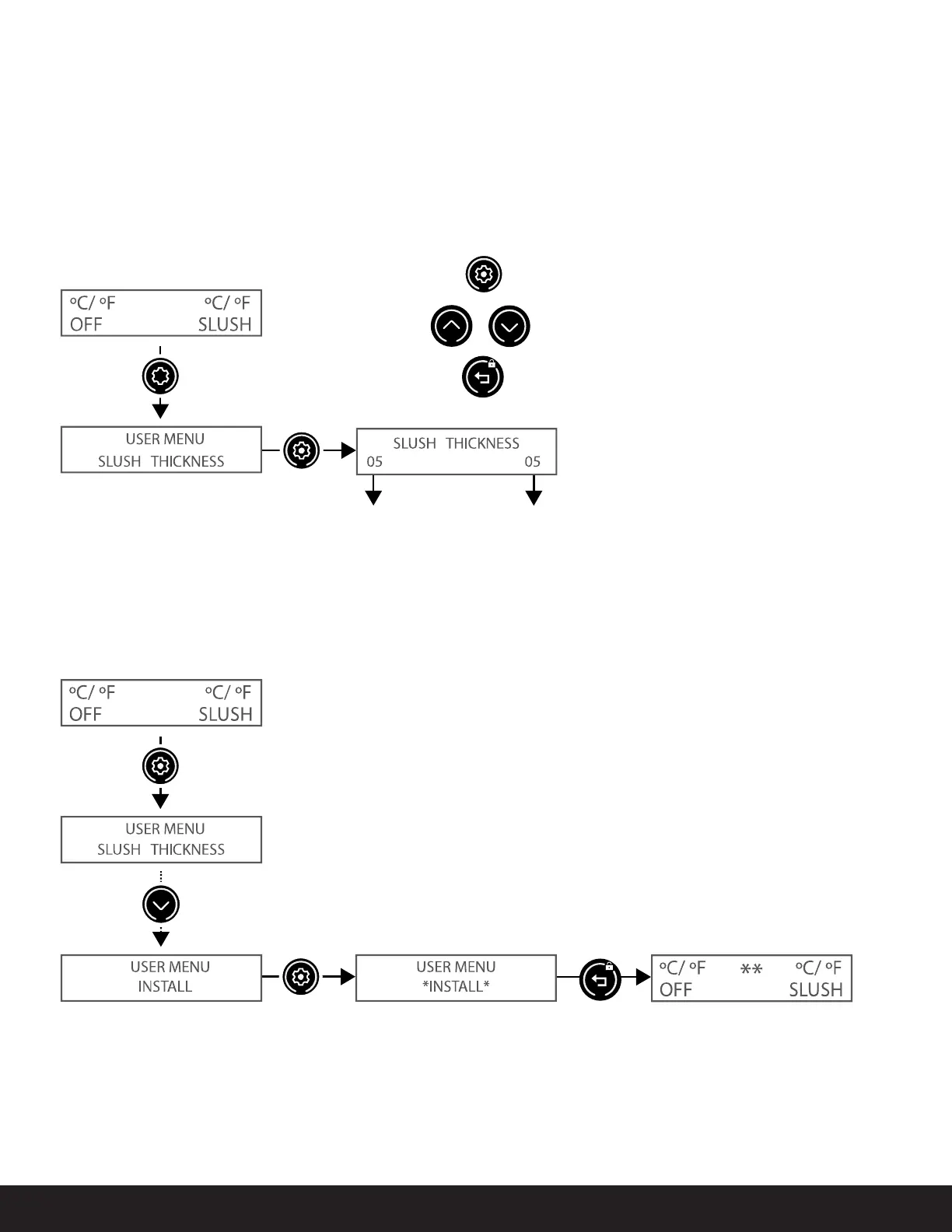 Slush thickness is adjustable from a level of 1 to 18. The higher the number, the thicker the frozen beverage consistency.