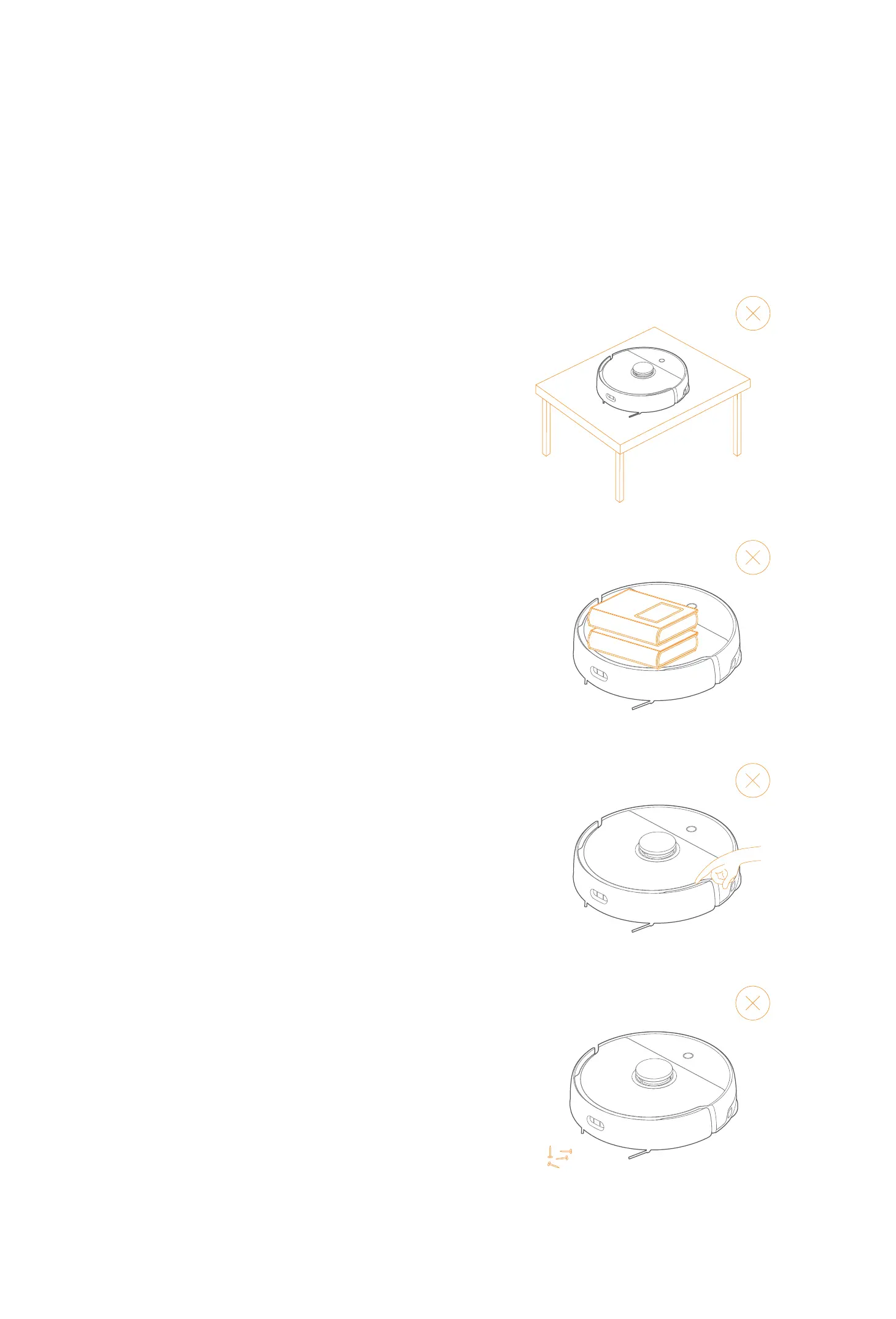 4. Do not allow the robot to vacuum up hard or sharp