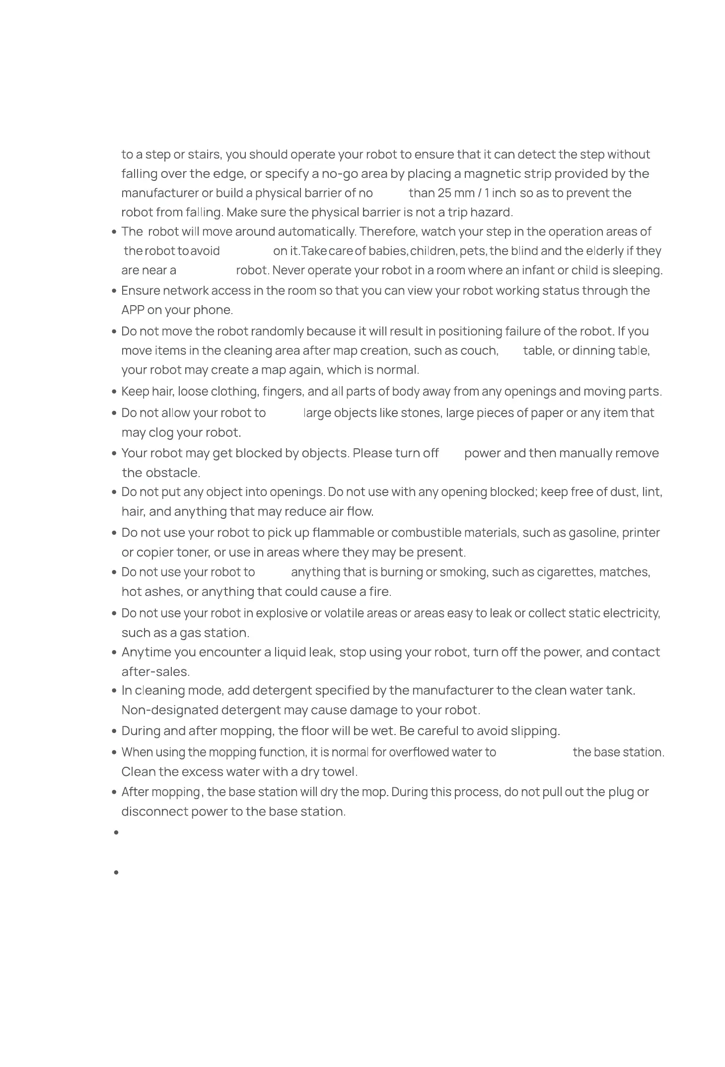 robot away from fire or places with temperatures higher than 130°C/266°F. Otherwise, your