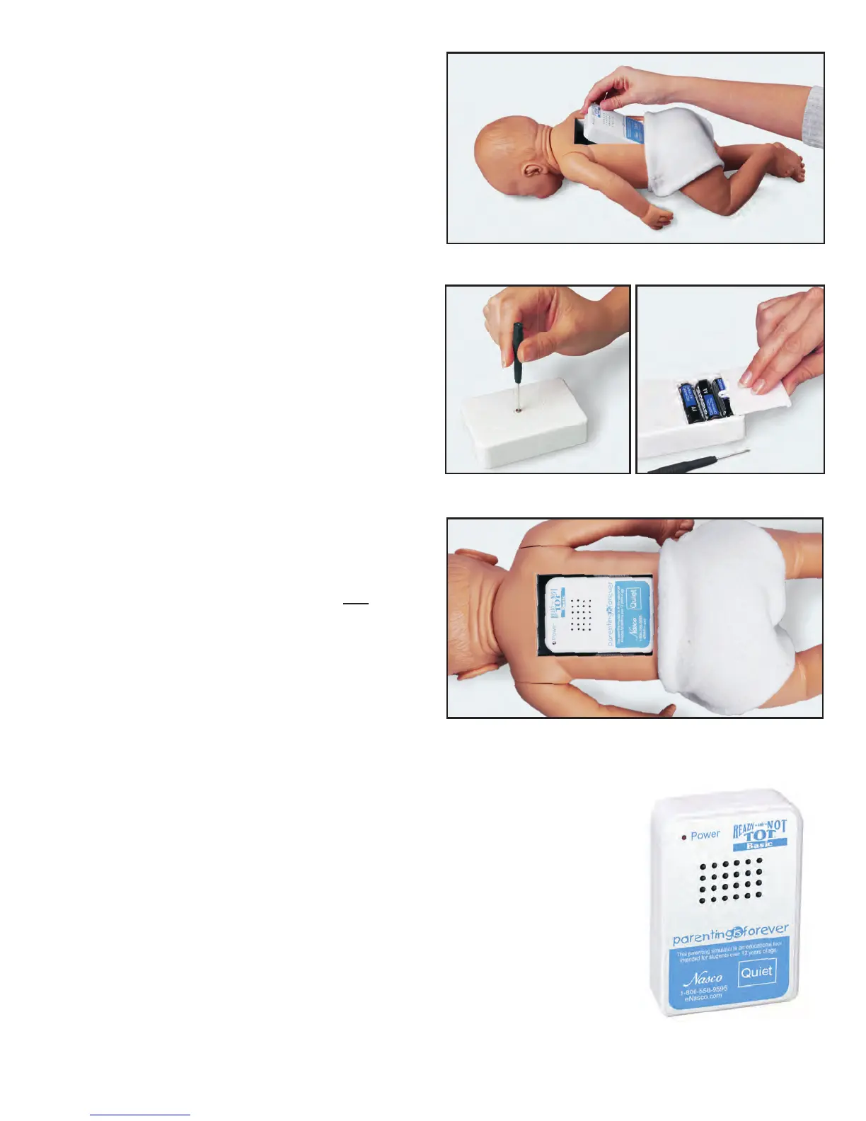 the “Quiet” button on the control box. The manikin will cry again in 10 minutes to simulate a short