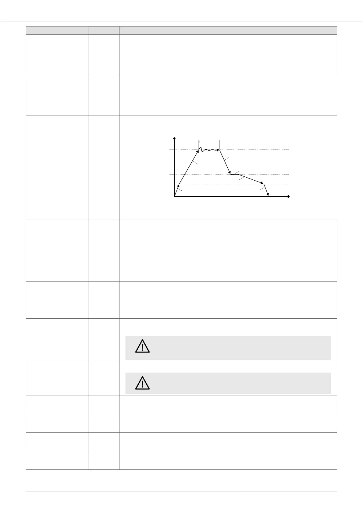 Excessively fast stop ramps may lead to an overvoltage in the inverter due to the regenerative effect.
