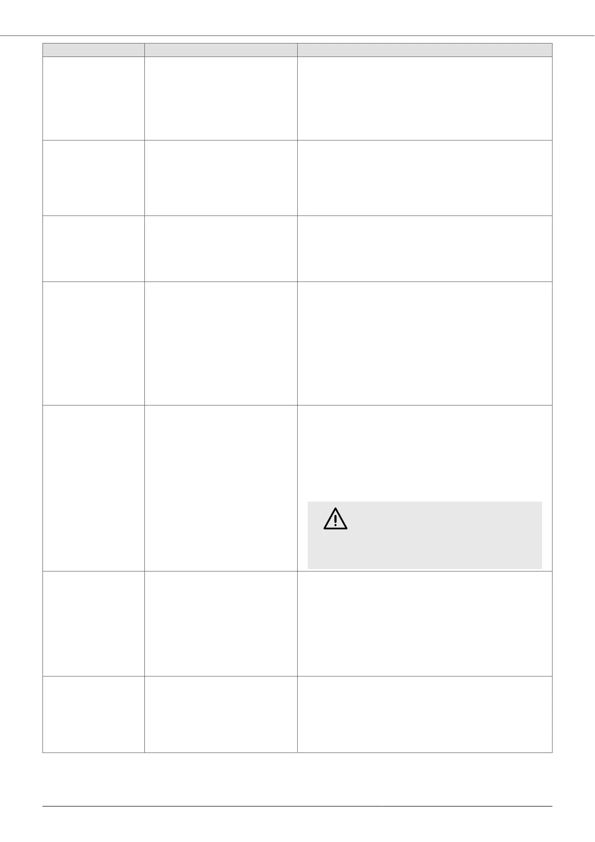 Alarm Description Possible solutions