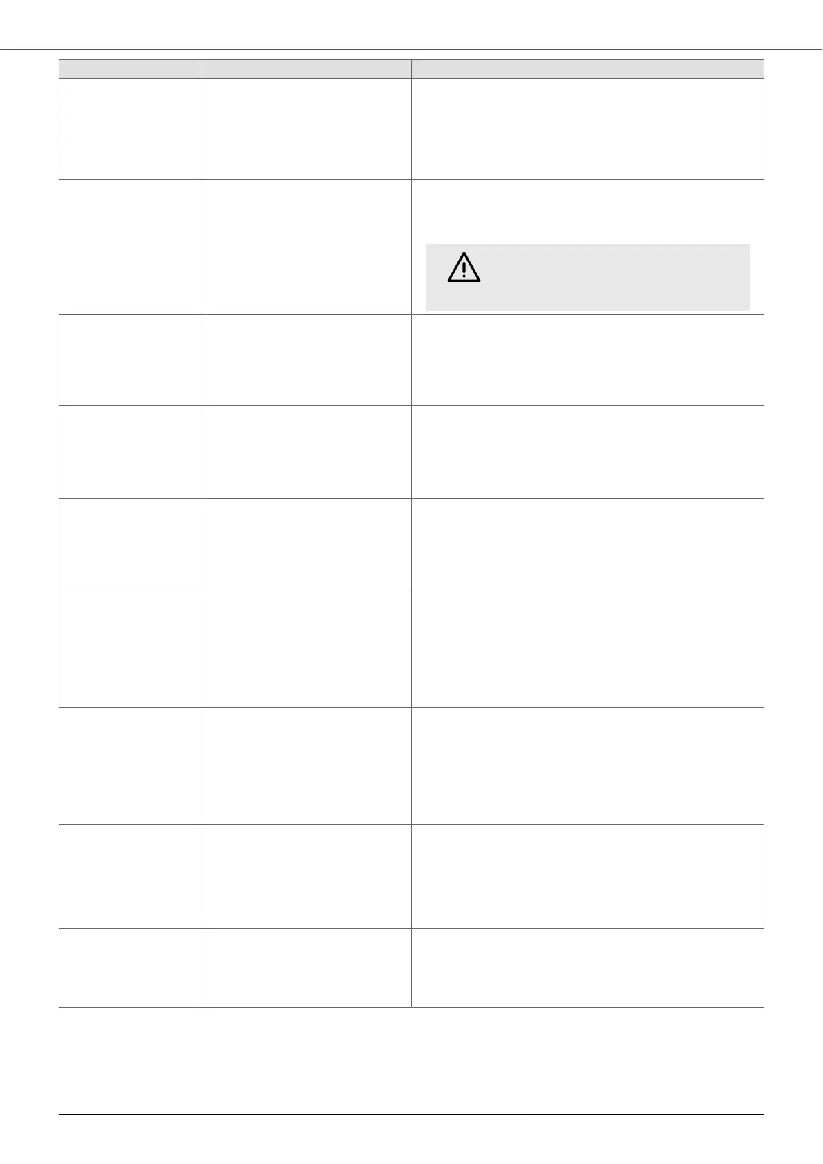 Alarm Description Possible solutions