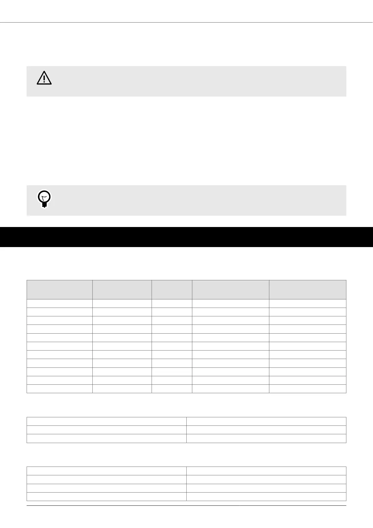Electrical specifications by model: