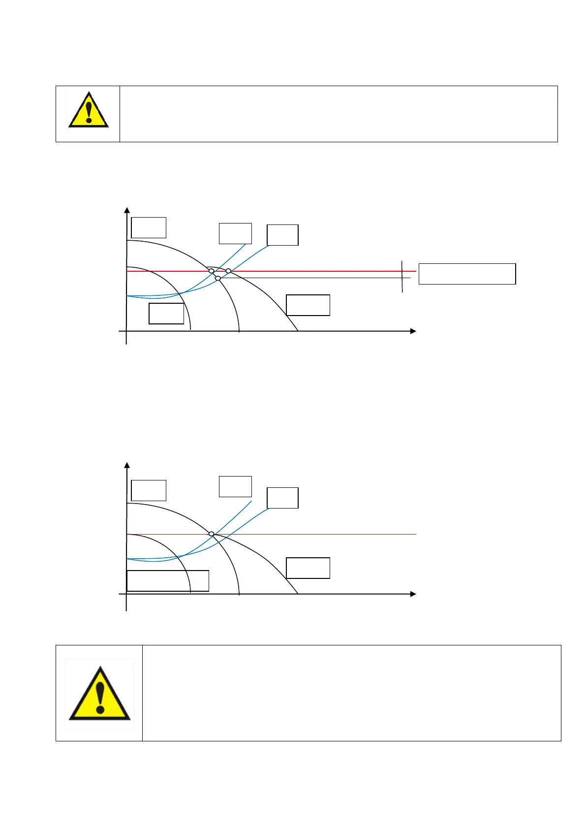 system curve from C1 to C2 ; since pump 1 (P1) is running at maximum speed, it is not possible to maintain the set pressure