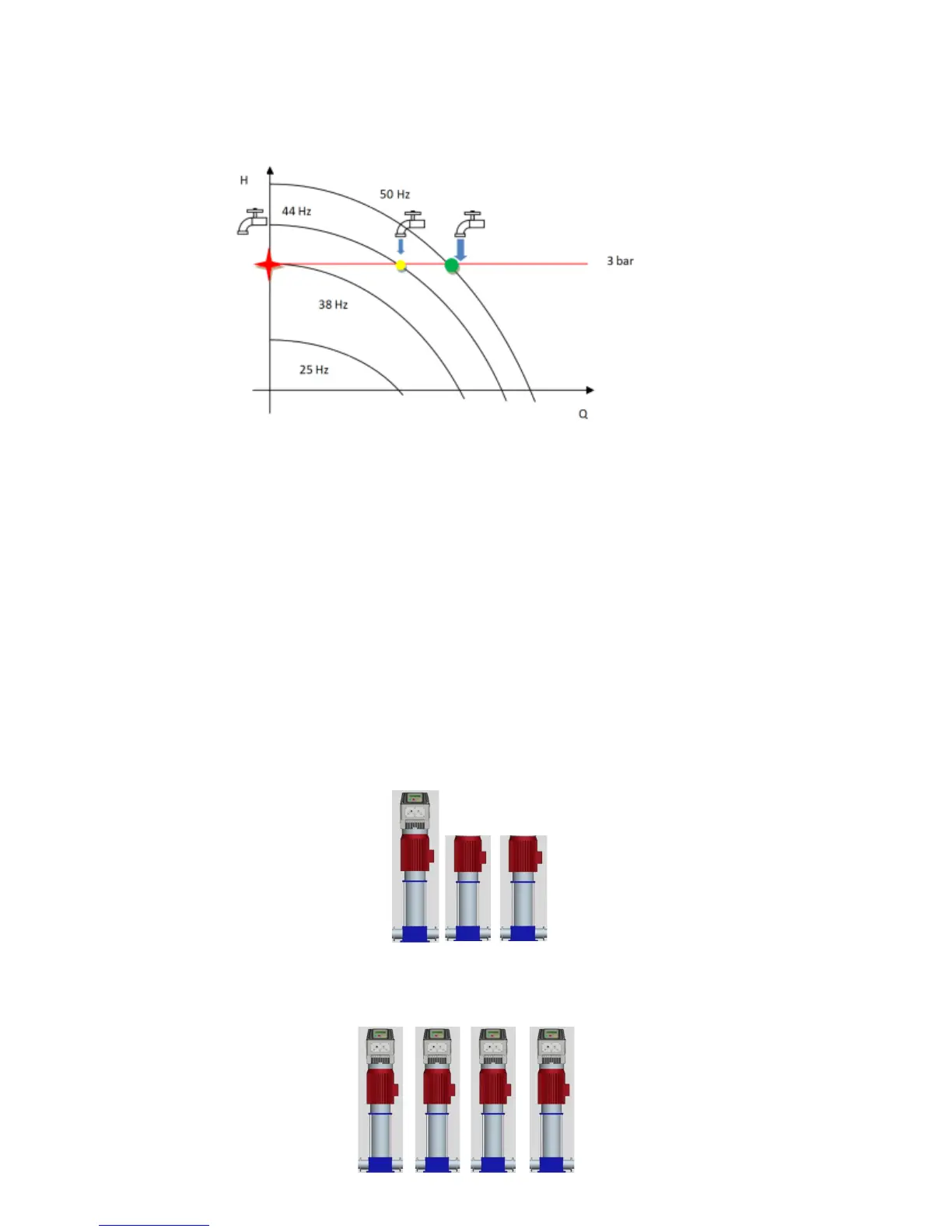 A second method of sharing water demand (named COMBO mode) consists of using additional pumps in parallel (up to 8),