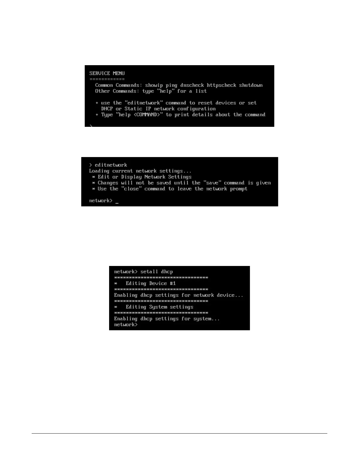 8. To access commands to change the network configuration, enter editnetwork at the prompt.