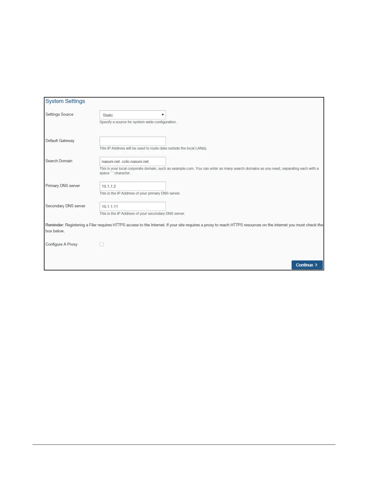 sources, HTTPS proxy, and NTP server. For example, if you specify the search domain