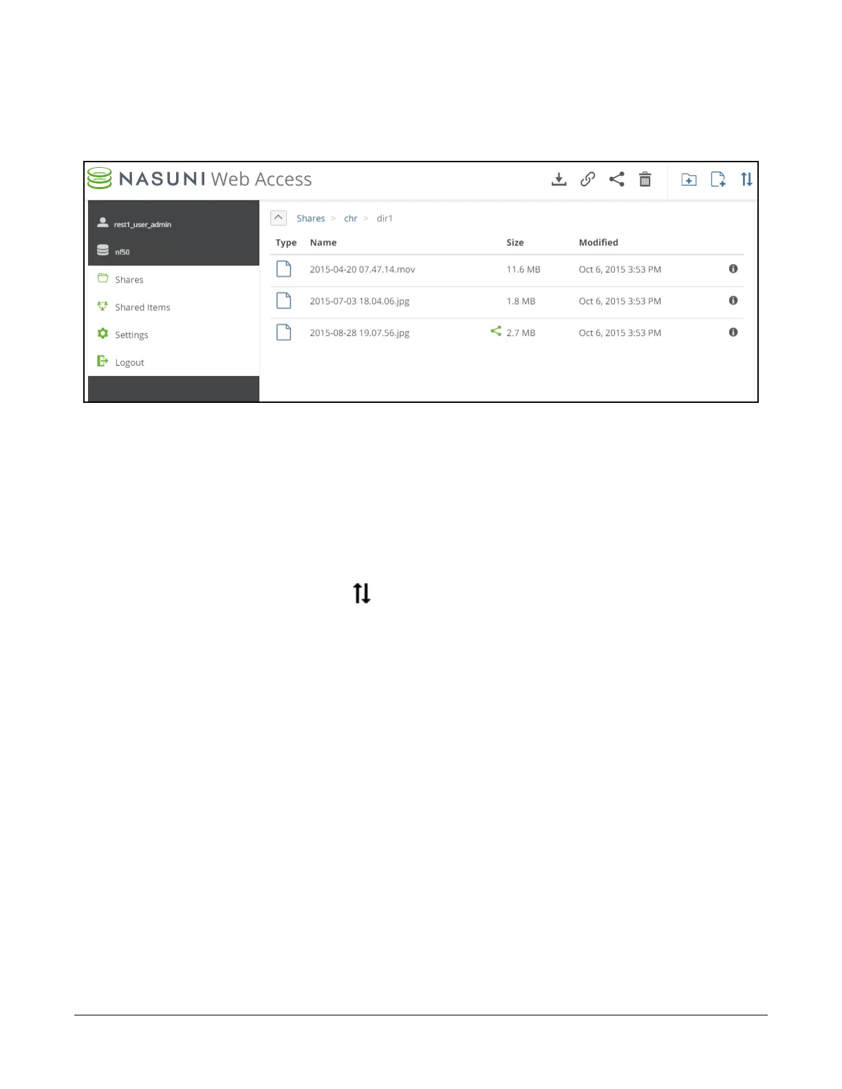 To open a CIFS share or directory, click the name of that CIFS share or directory. The contents appear