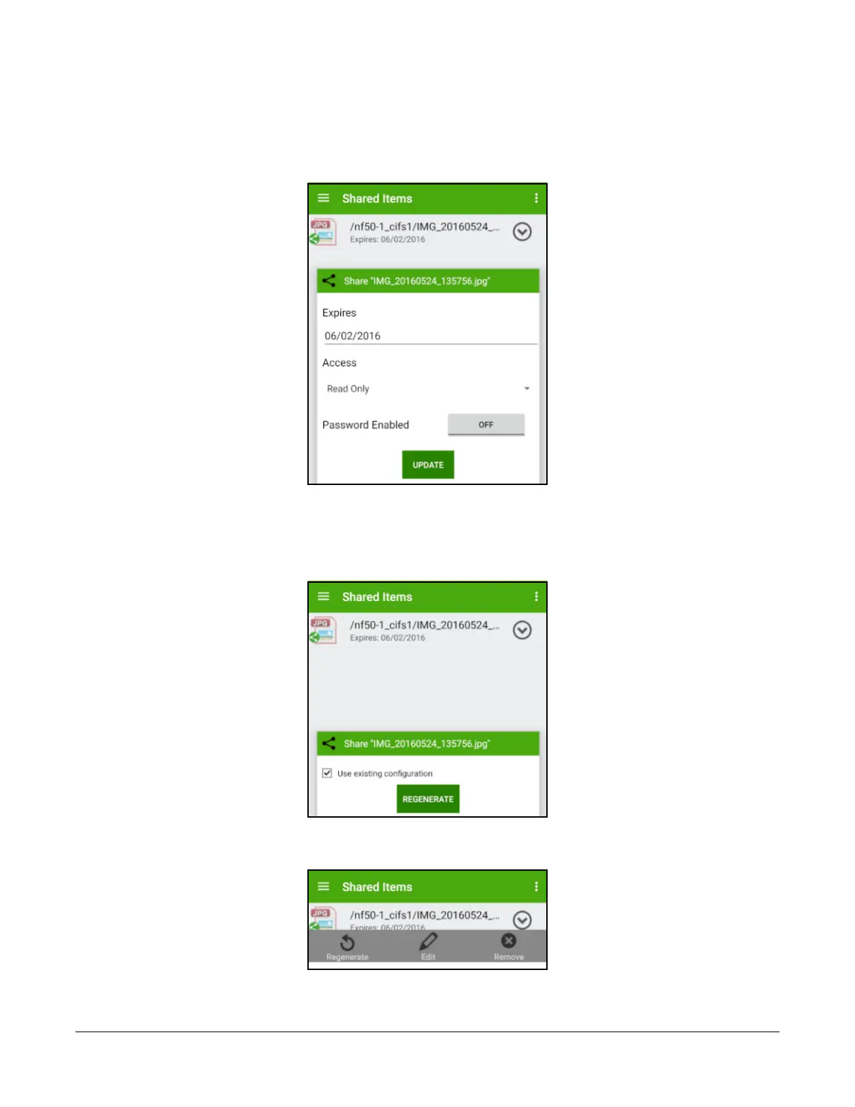 To create a new link with the new features, and make the existing link invalid, tap Regenerate.