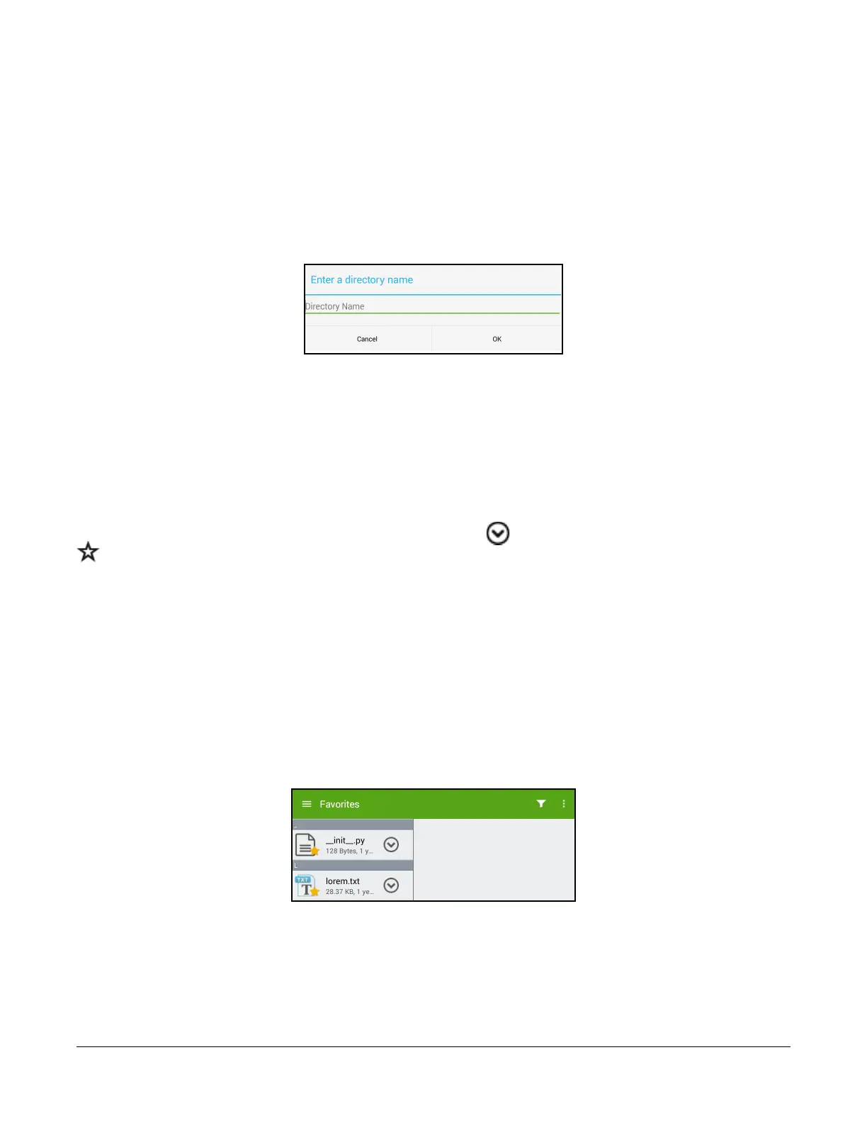 To tag a file or folder as a favorite, tap the drop-down icon beside its name, then tap the star icon