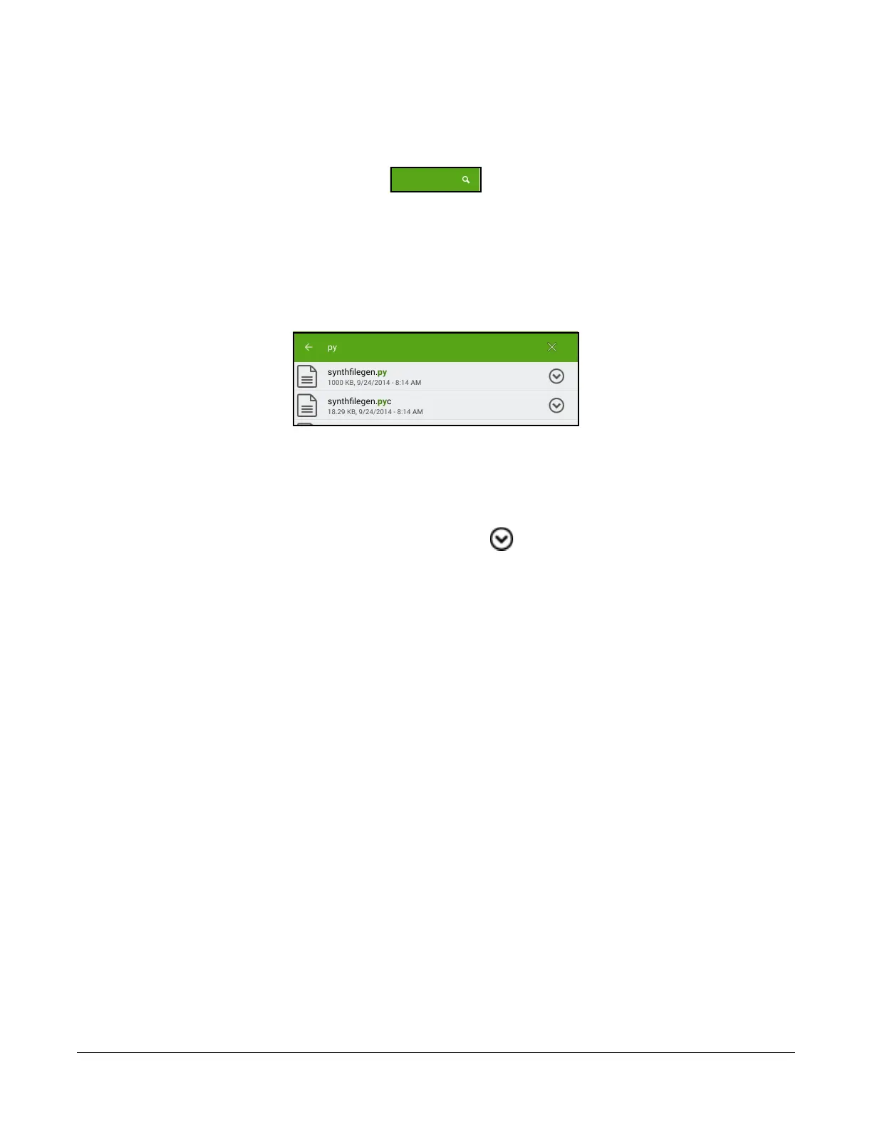 Enter text in the Search area. Any files in the folder that contain the text appear in a list with the search