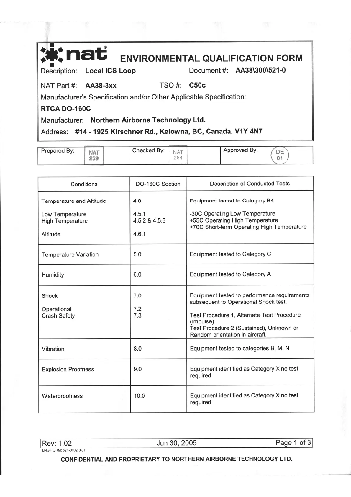 Nat AA38-300 - Environmental Qualification Form; Environmental Conditions Testing; Operational and Physical Tests