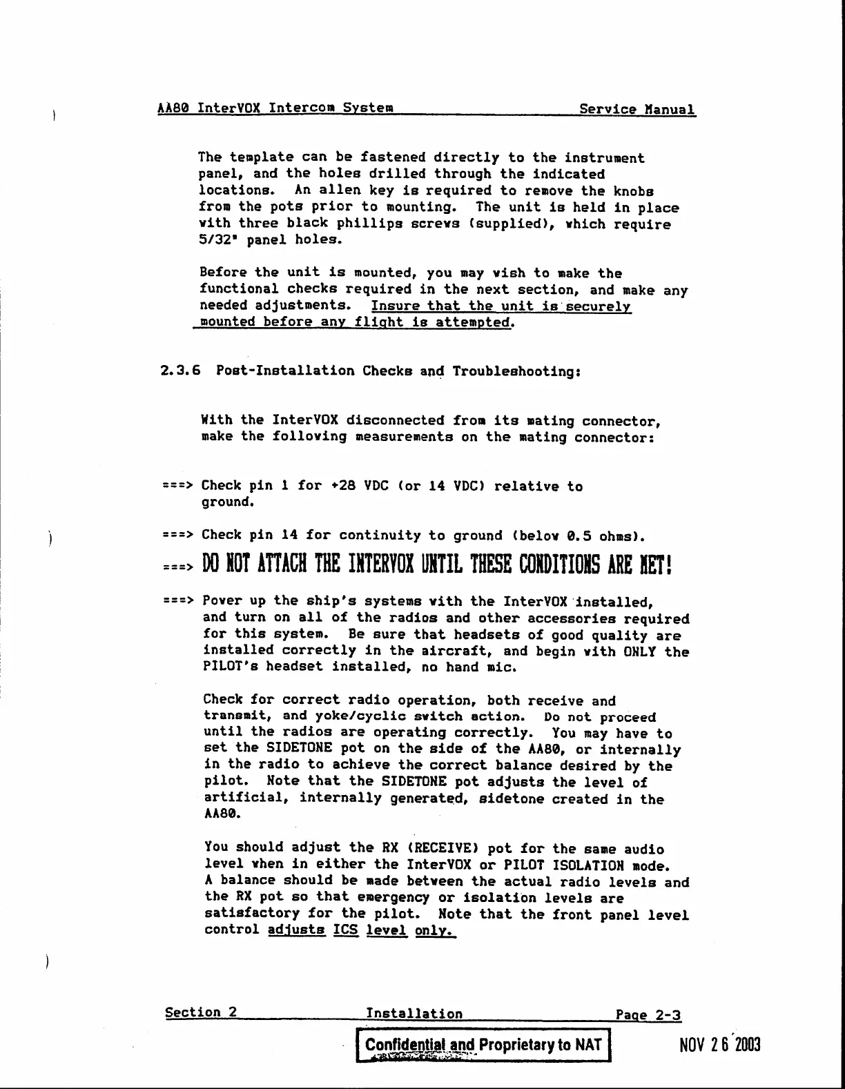 Nat AA80 InterVOX - Post-Installation Checks and Troubleshooting