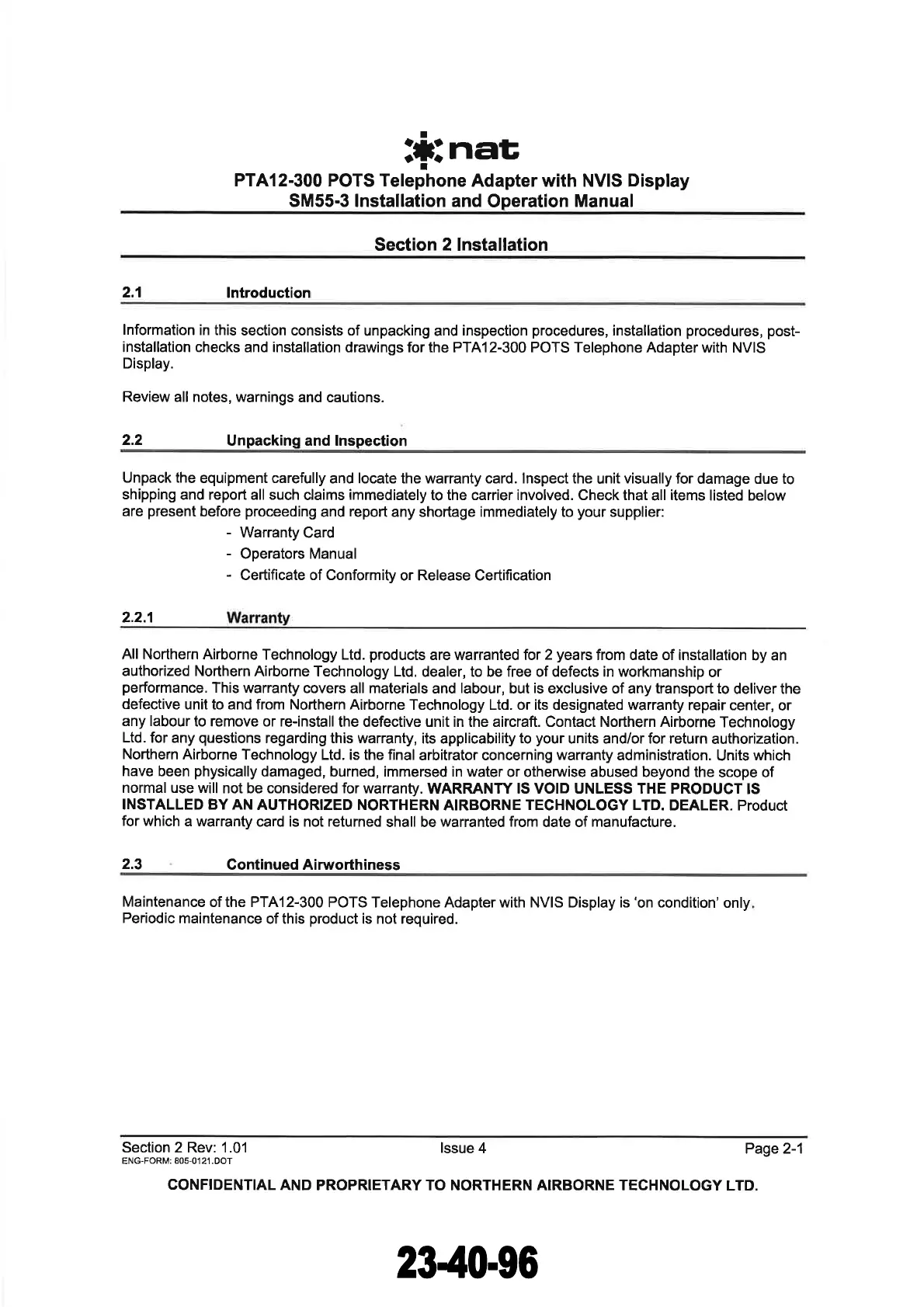 PROPRIETARY TO NORTHERN AIRBORNE TECHNOLOGY
