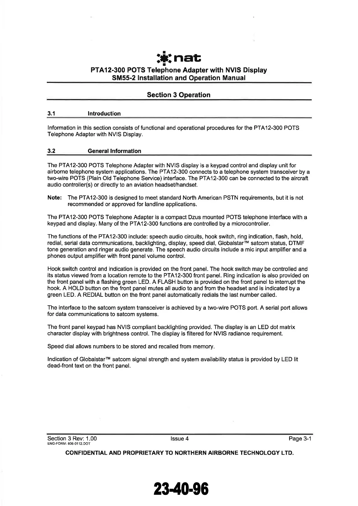 The PTA12-300 POTS
