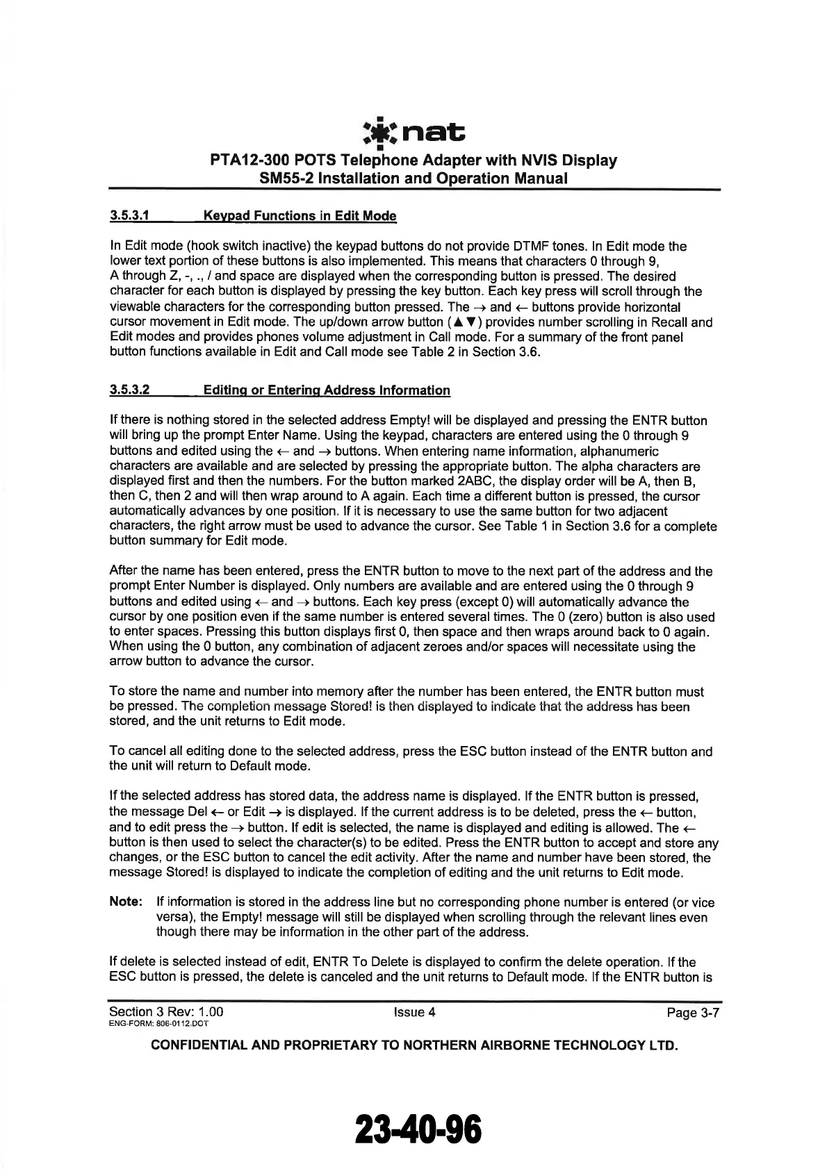 PROPRIETARY TO NORTHERN AIRBORNE TECHNOLOGY