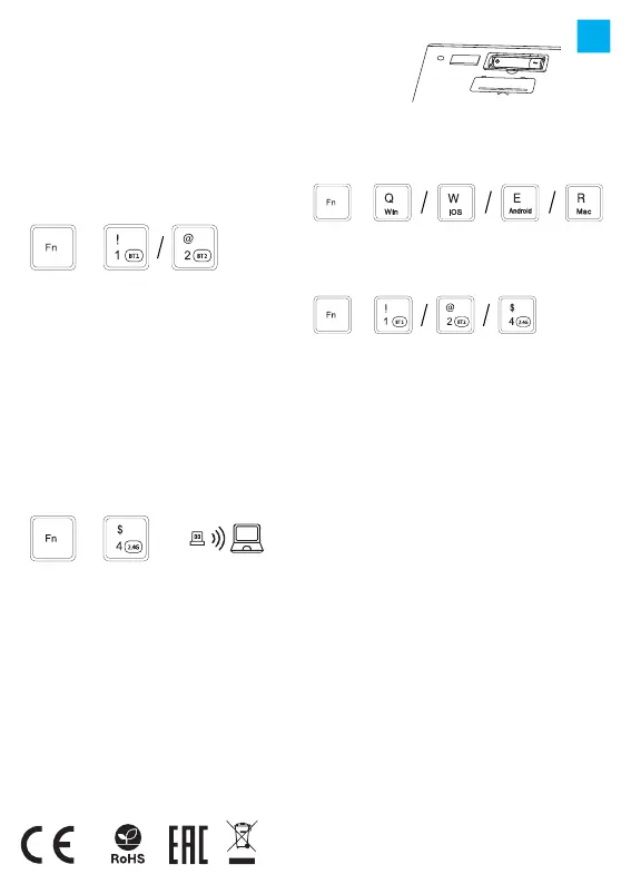 клавишите FN + BT1 | BT2 | 2.4G.