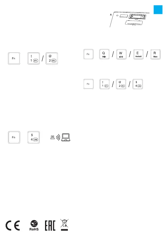 притисните тастере ФН + БТ1 | БТ2 | 2.4Г.