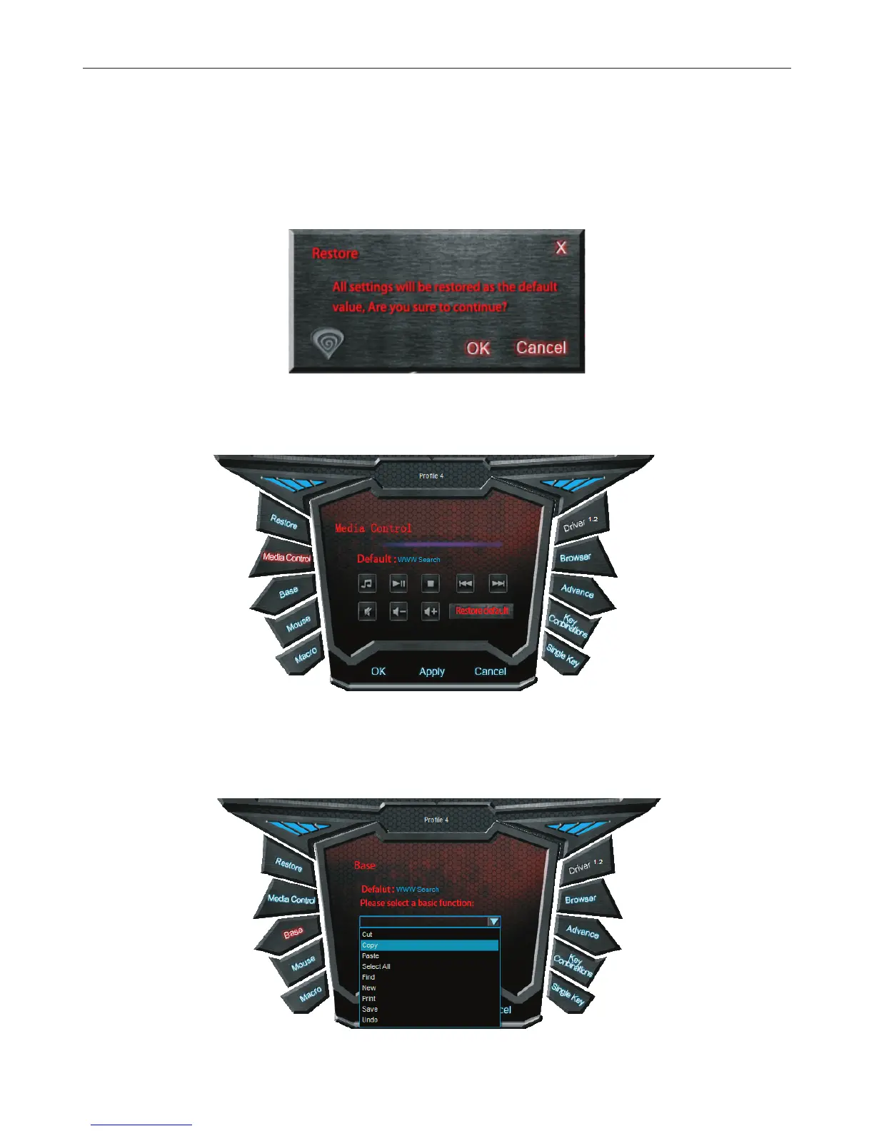 . Przywrócenie domyślnych funkcji wszystkich klawiszy – wybierz „Default setting” w lewym dolnym