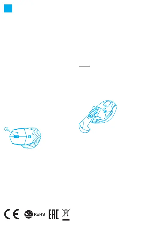 • Ändra läge på ON/OFF-switch knappen längst ner på musen till