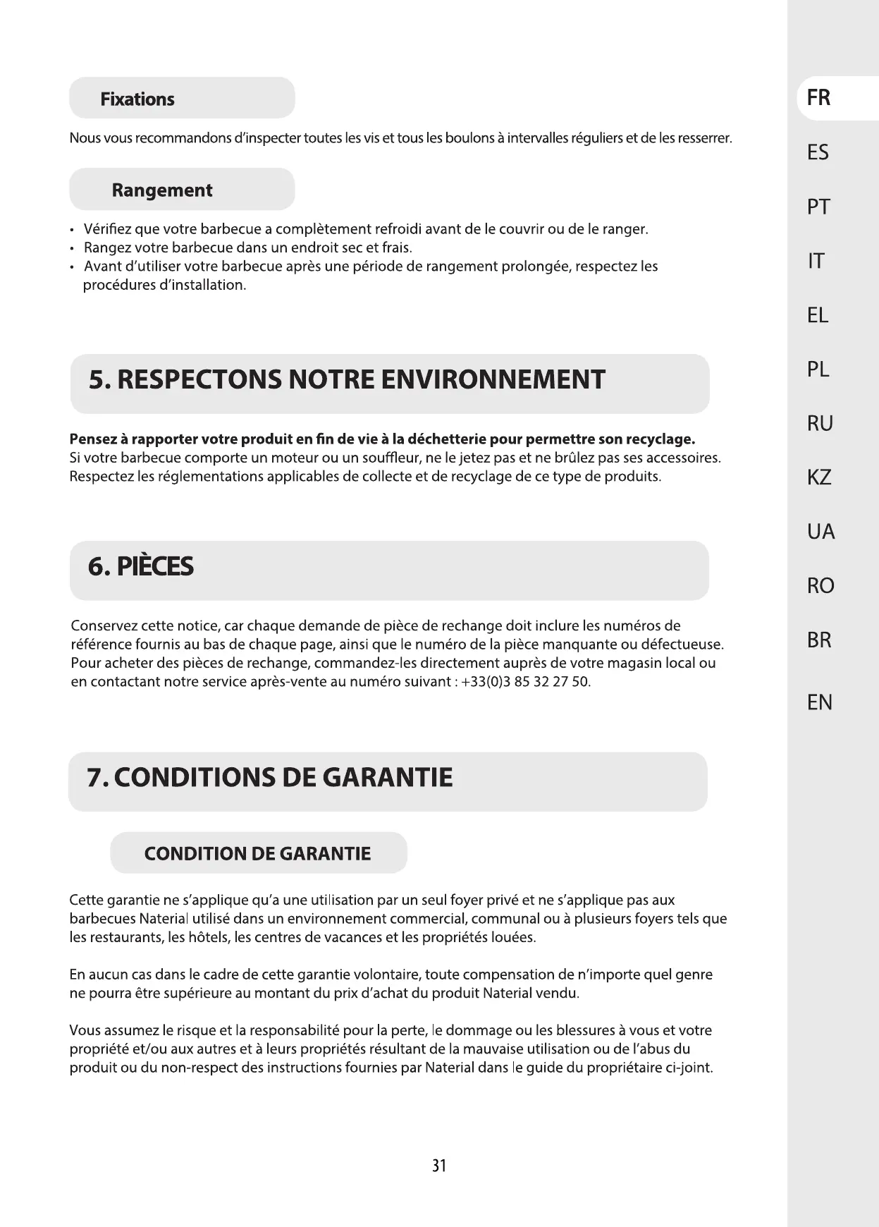 Naterial CENTAURUS-Beta - Fastenings and Storage; 5. LETS PROTECT THE ENVIRONMENT; 6. PARTS; 7. TERMS OF WARRANTY