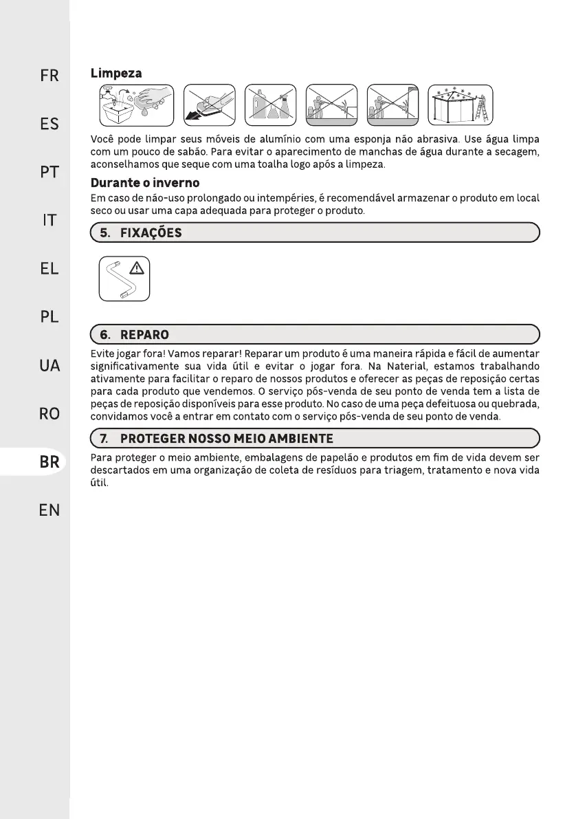 Fixe as pernas firmemente no chão para que o produto não se deforme ou se