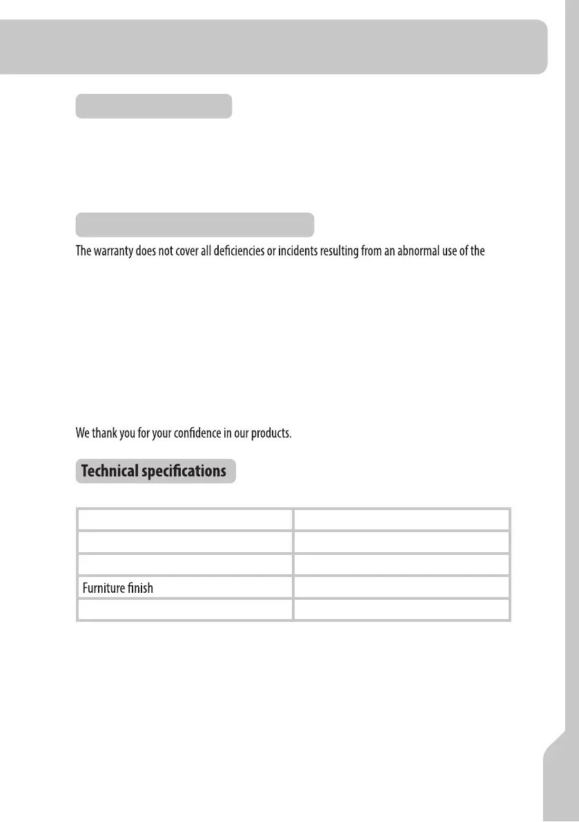 WARRANTY AND TECHNICAL SPECIFICATIONS