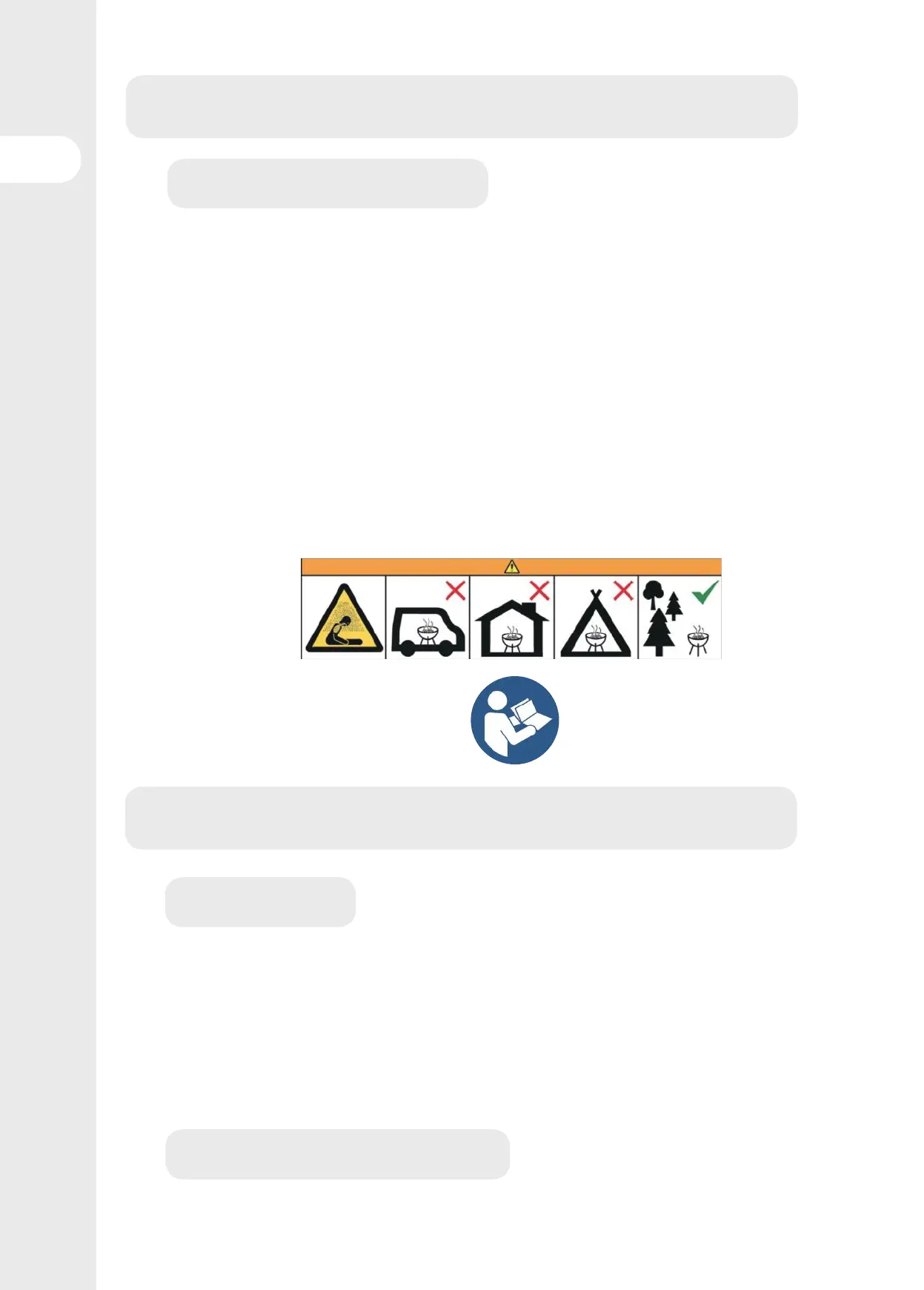 • No use la barbacoa en un espacio confinado y/o residencial, como casas, tiendas de campaña, caravanas, casas rodantes,