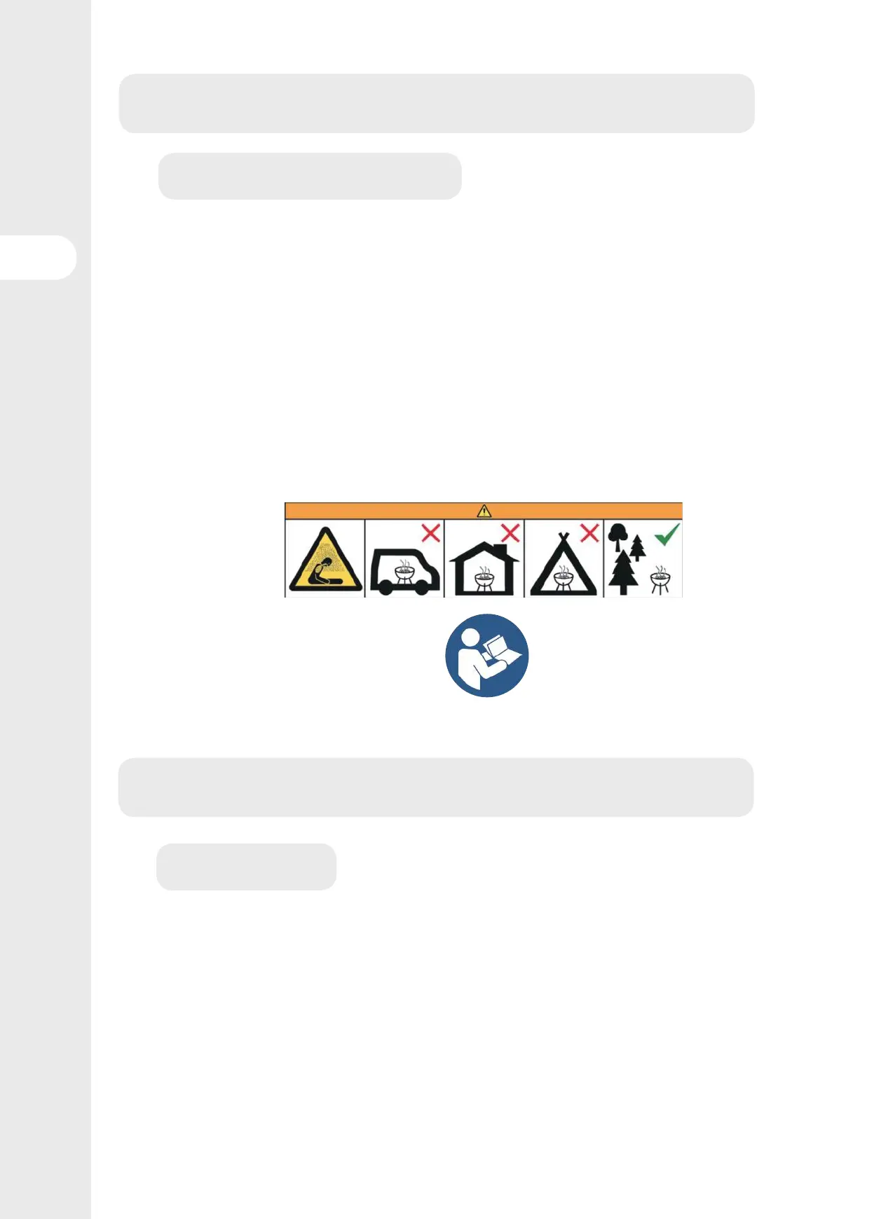• Non usare il barbecue in uno spazio ristretto e/o abitato, come case, tende, roulotte, camper, imbarcazioni.