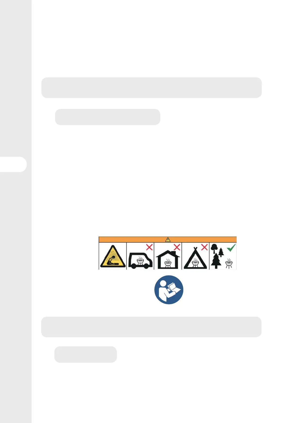 • Барбекю грилін аспалы құрылымның (өре, шатыр,...) немесе ағаш астына орнатпаңыз.
