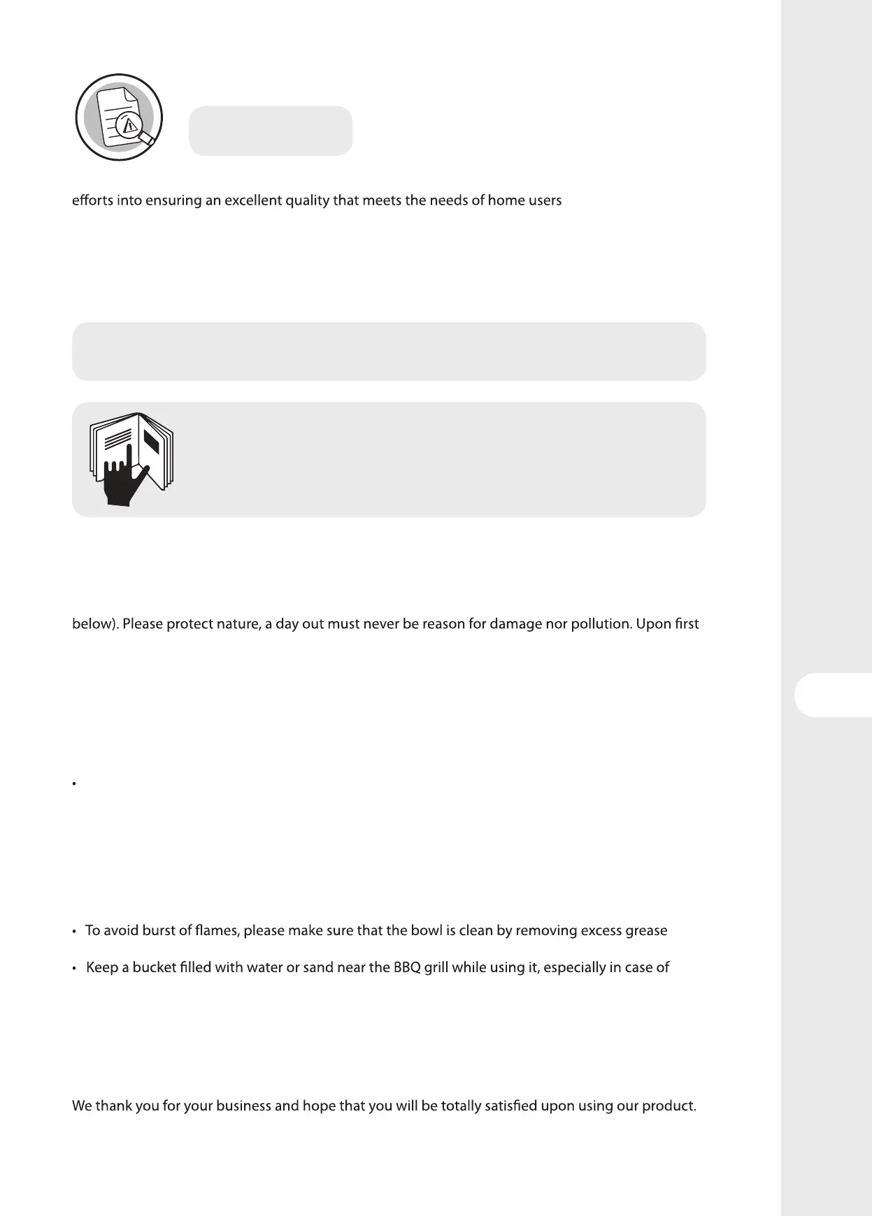 • Before you start grilling, please wait for a layer of ashes to covers the burning coal.