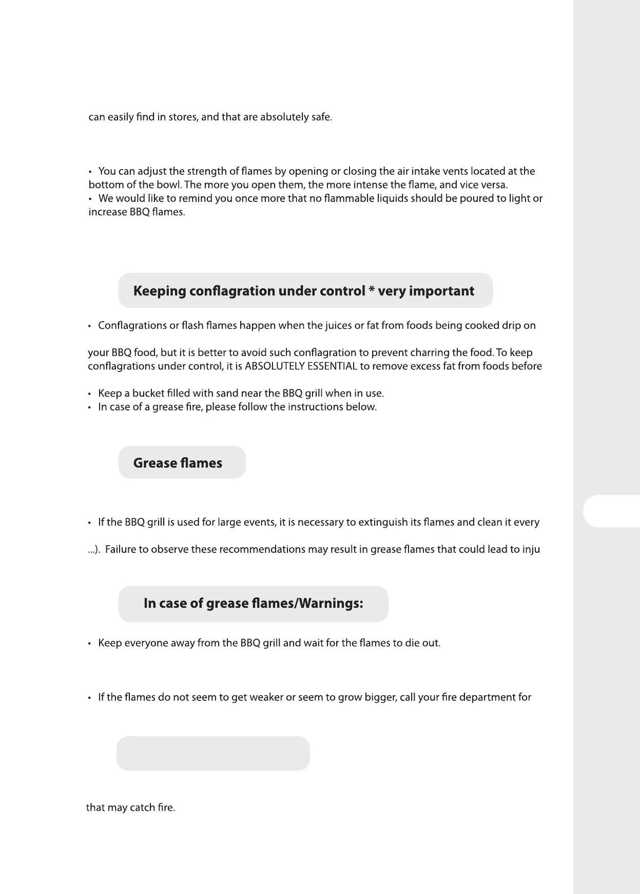 • Please clean your BBQ grill systematically after each use to avoid accumulation of cooking grease