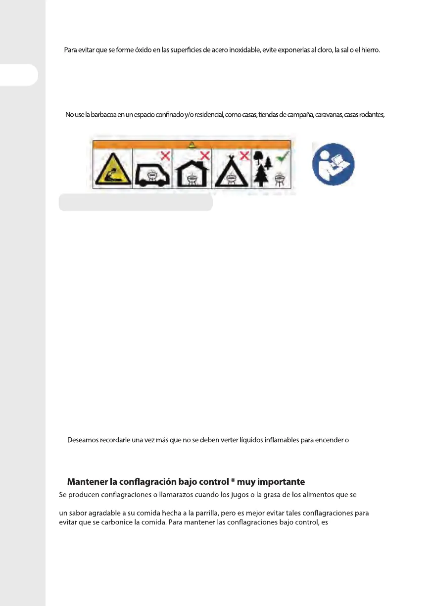 • Por razones de seguridad obvias, le recomendamos totalmente que evite mover la barbacoa cuando