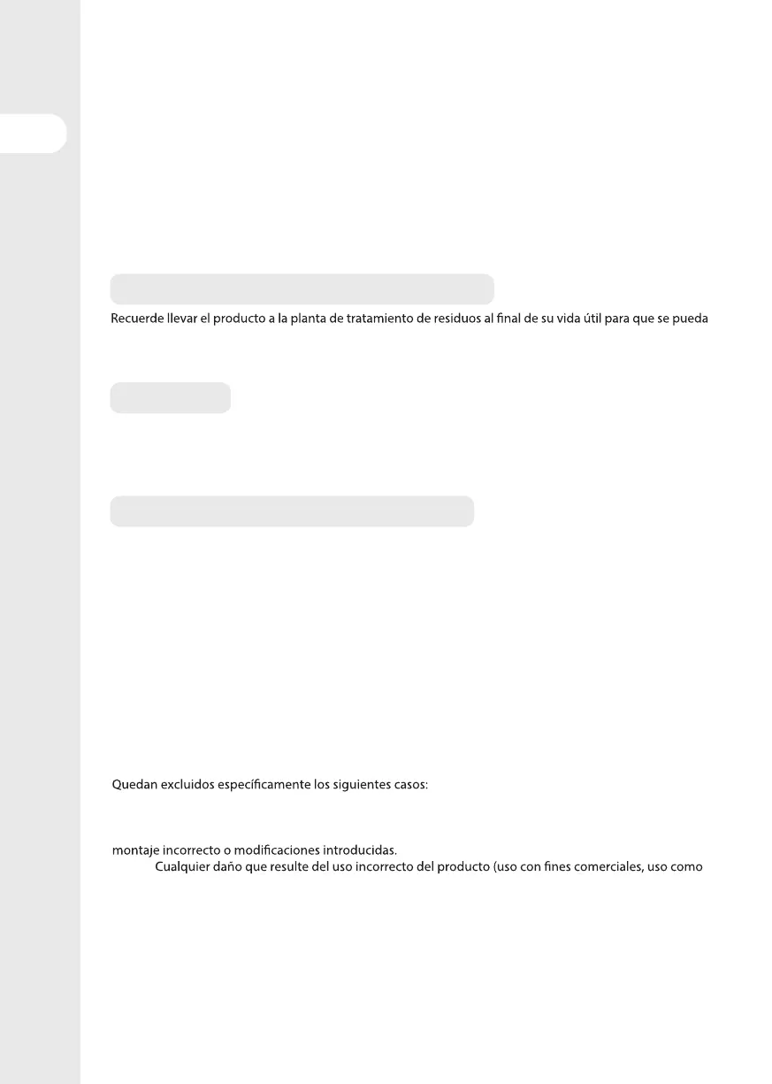 La garantía no cubre problemas o incidentes producidos a raíz del uso incorrecto del producto.