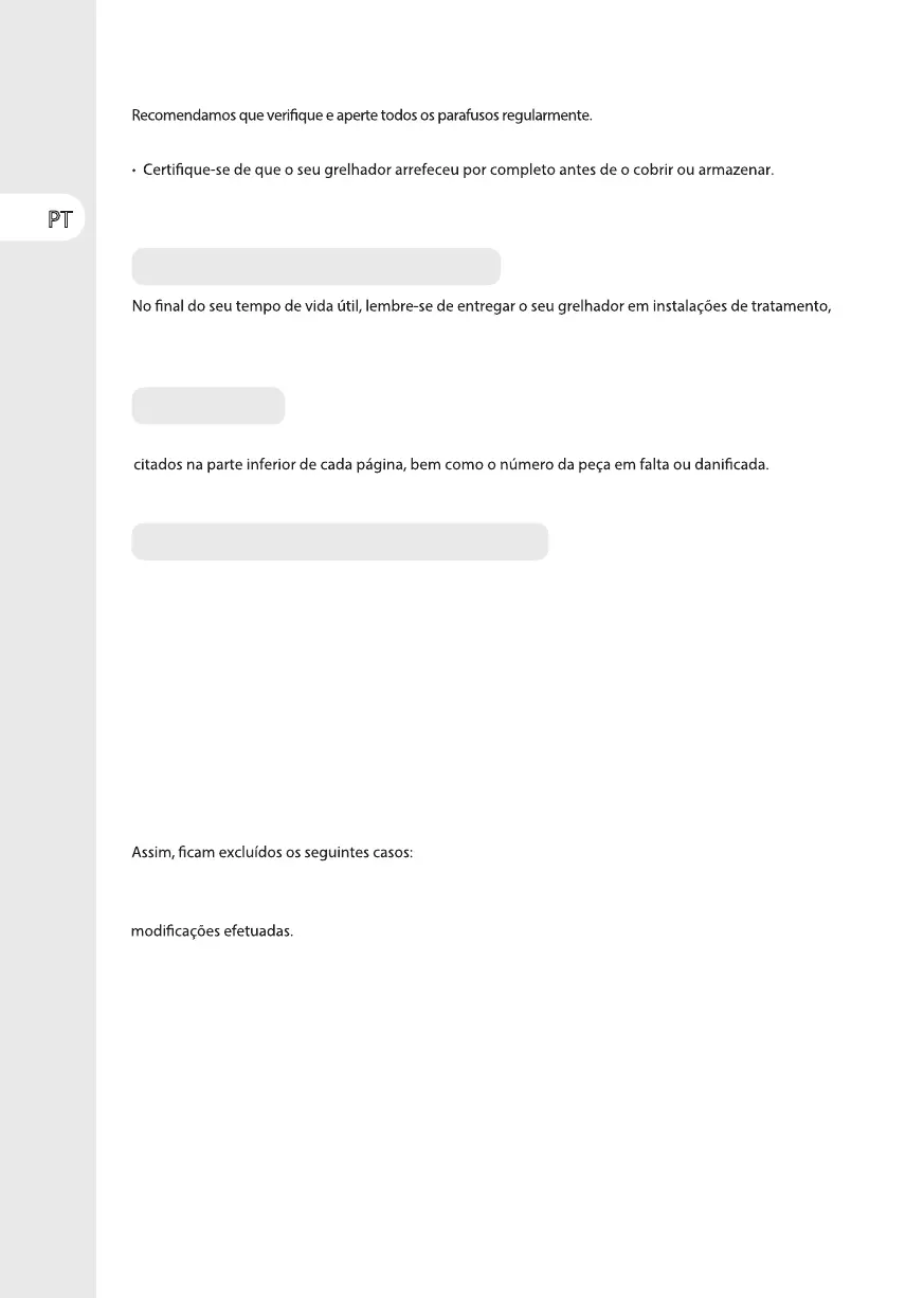 Esta garantia abrange apenas uma utilização num único lar privado e não se aplica aos grelhadores