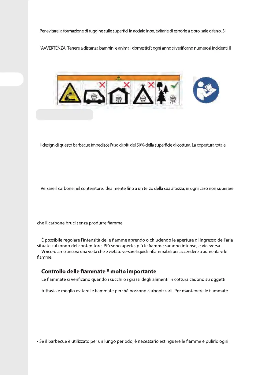 • Non usare il barbecue in uno spazio ristretto e/o abitato, come case, tende, roulotte, camper, imbarcazioni.