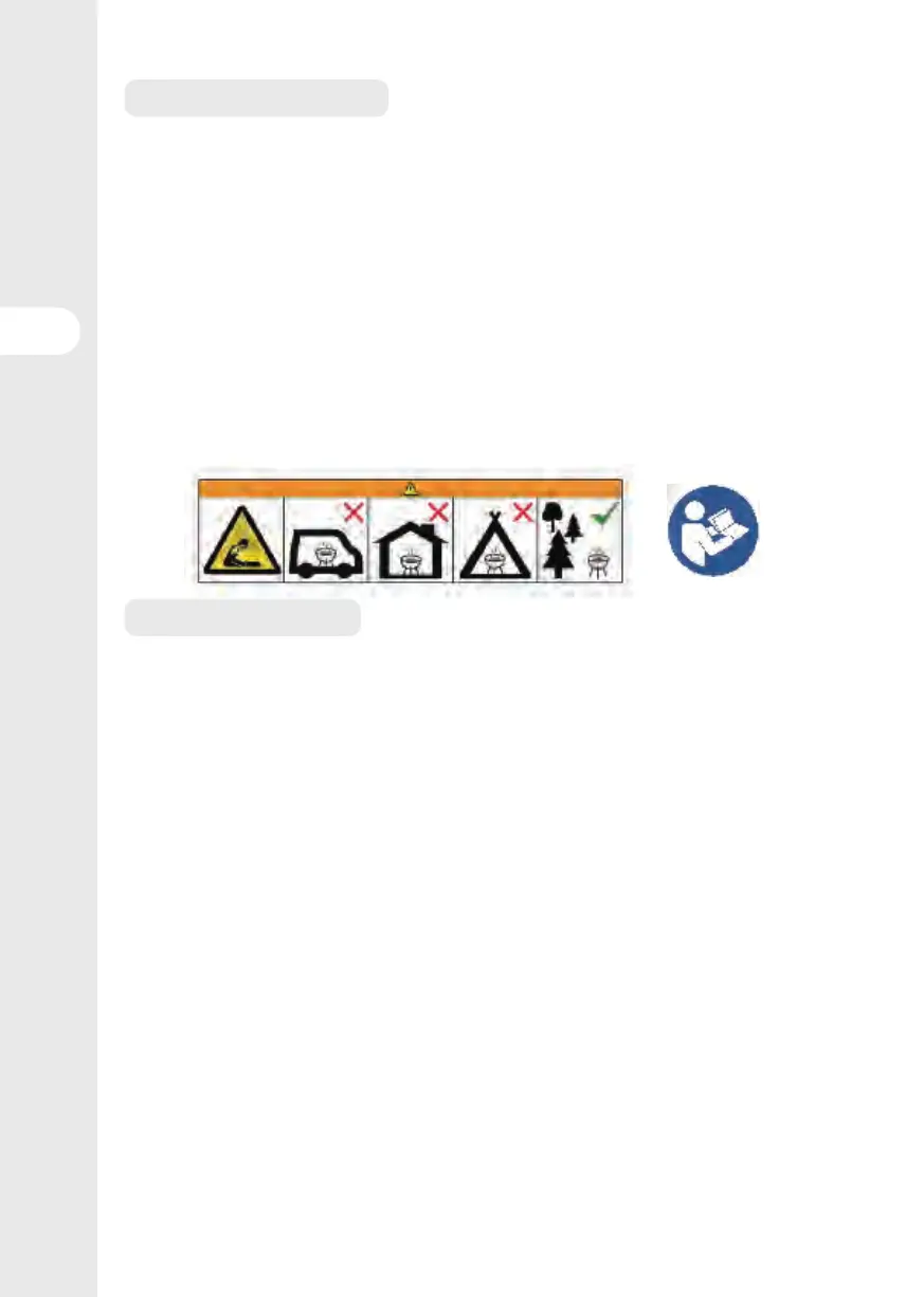 • Μη χρησιμοποιείτε την ψησταριά σε περιορισμένο και/ή κατοικημένο χώρο, π.χ., μέσα σε κατοικίες, σκηνές, τροχόσπιτα,