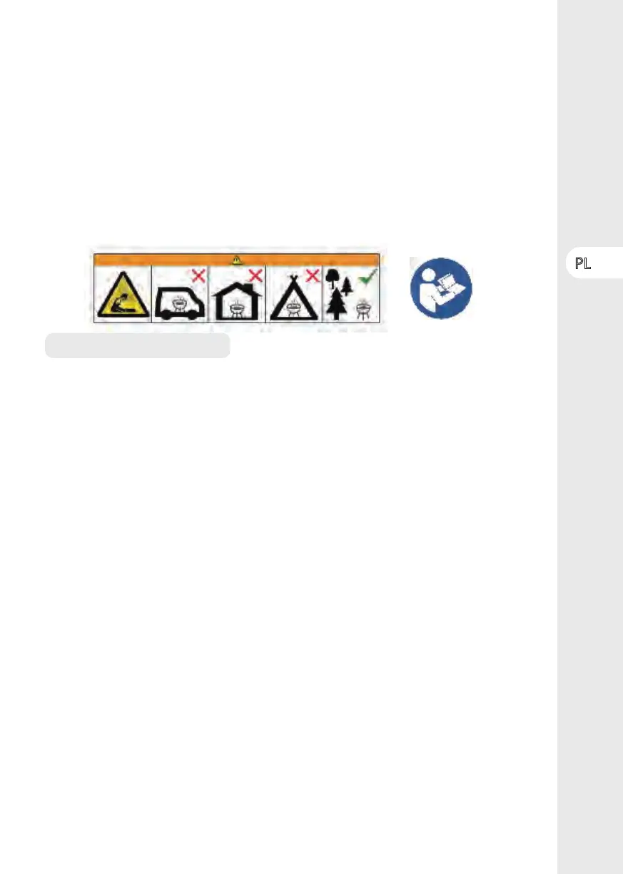 • Grilla nie należy używać w przestrzeniach zamkniętych i/lub mieszkalnych np. w budynkach, namiotach,