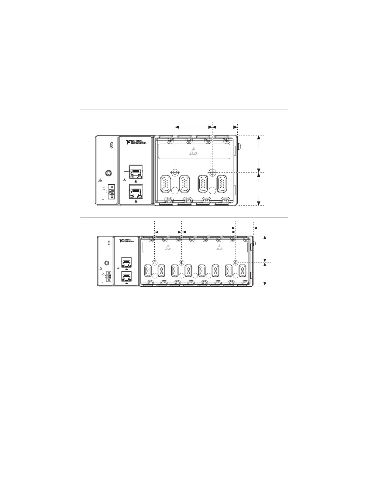 The following figures show the surface mounting dimensions for the cDAQ-9185 and