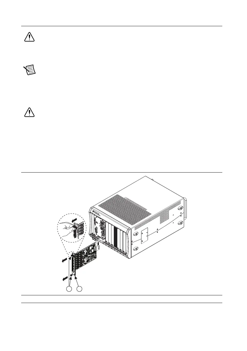 Figure 9. Removing NI PXIe-4302/4303 Modules