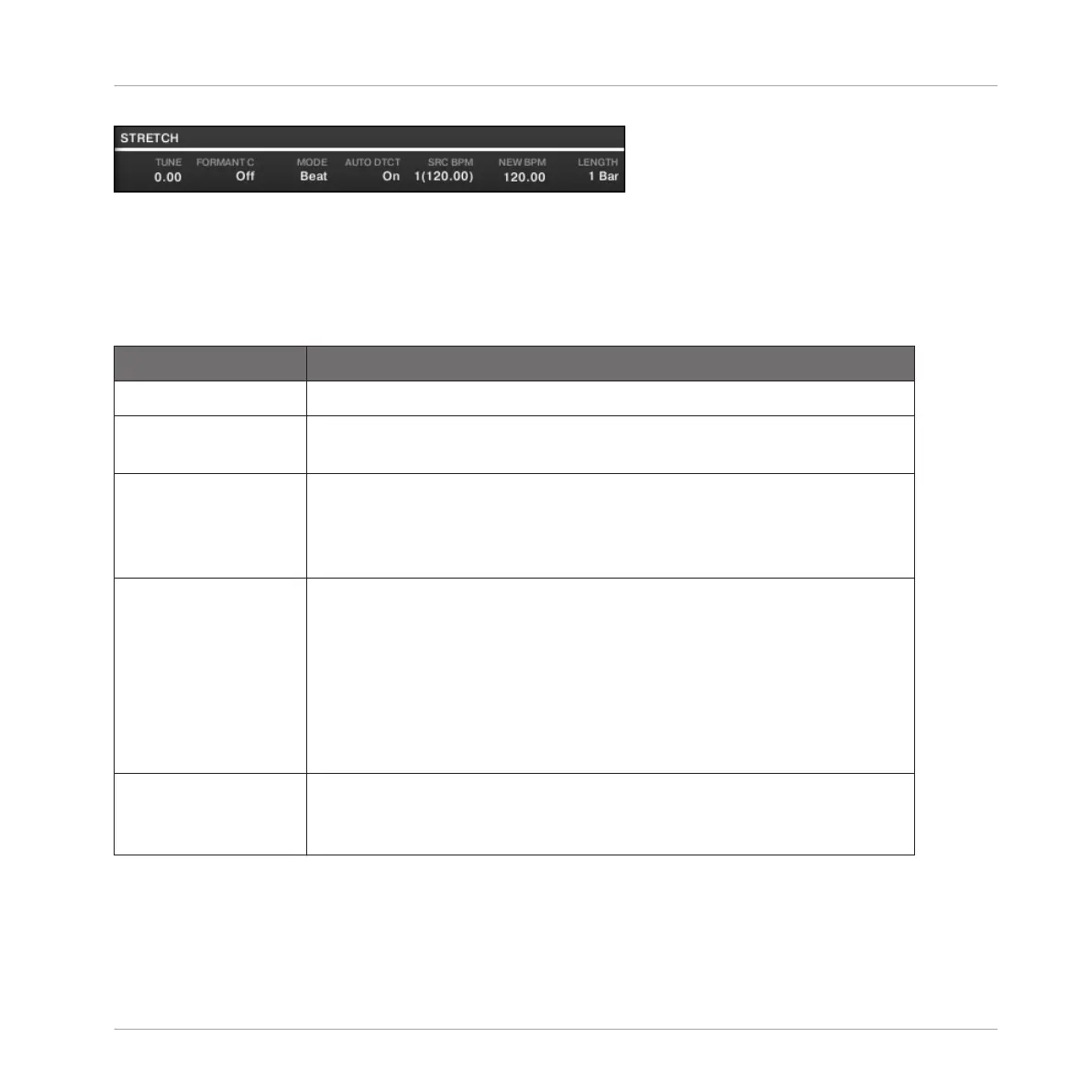 These controls allow you to adjust the parameters of the time stretching / pitch shifting func-